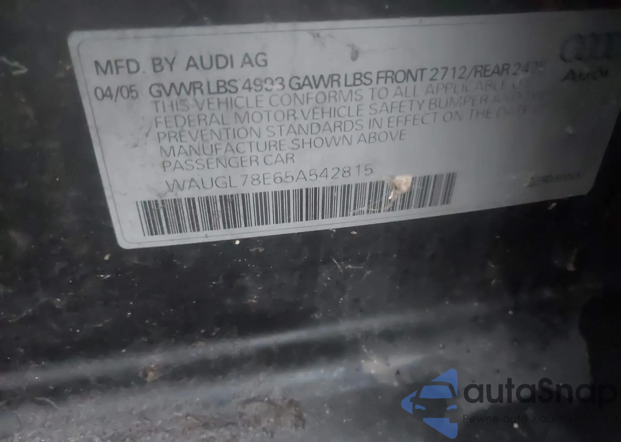 • VIN WAUGL78E65A542815