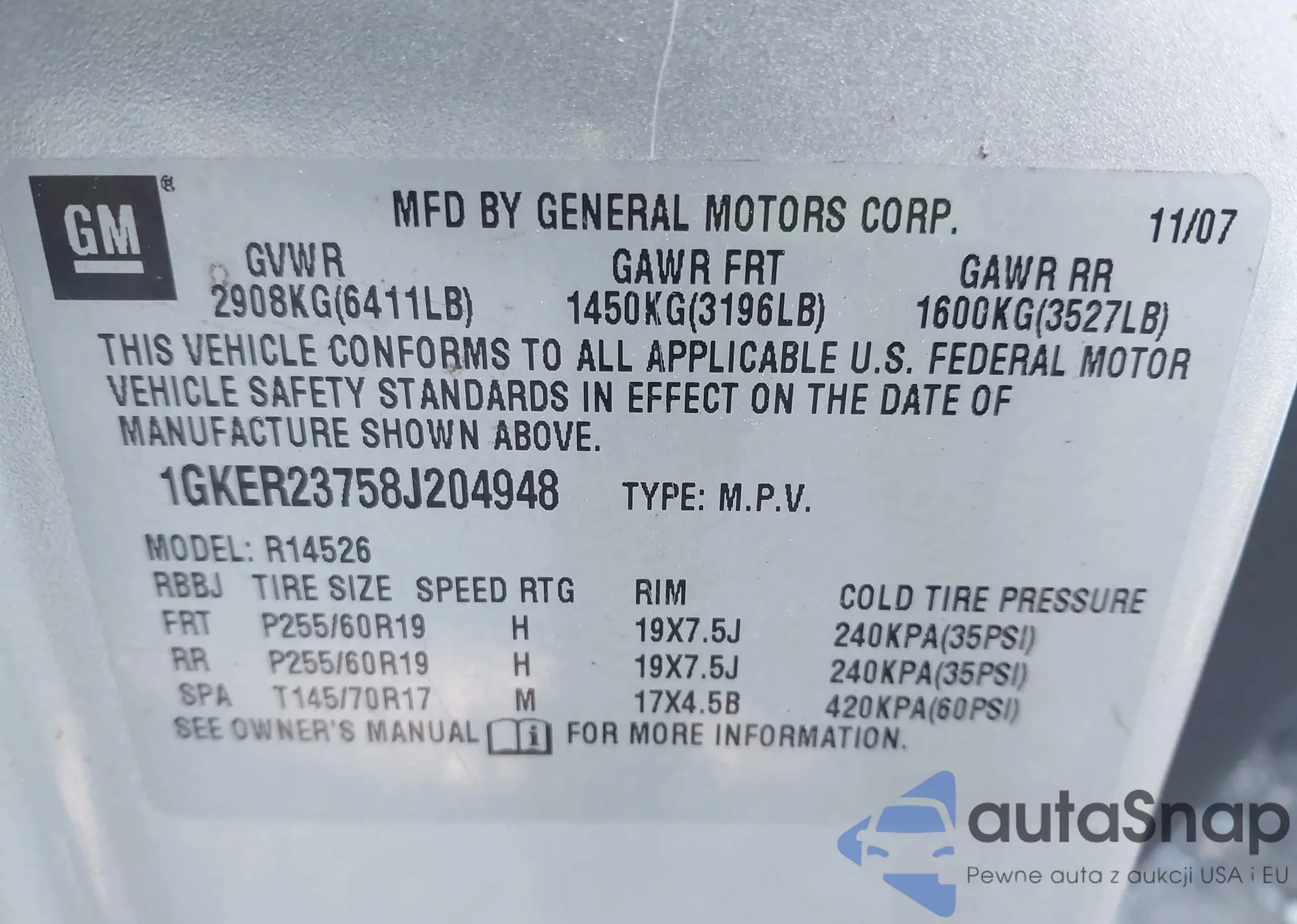 • VIN 2G2WR544751137835
