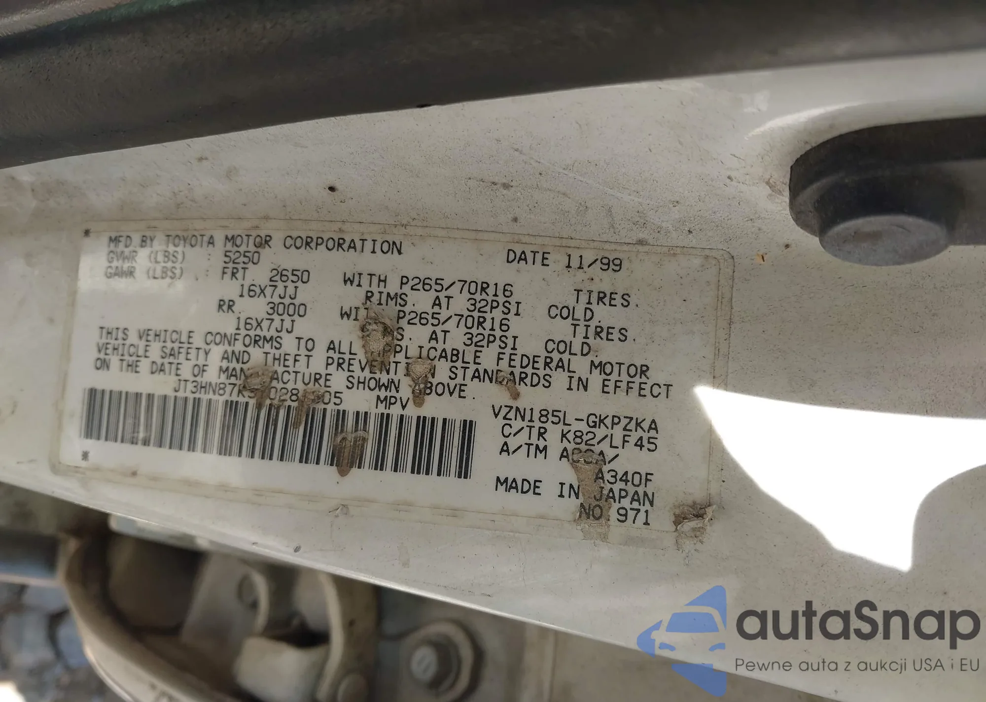 • VIN JT3HN87R9Y0281805