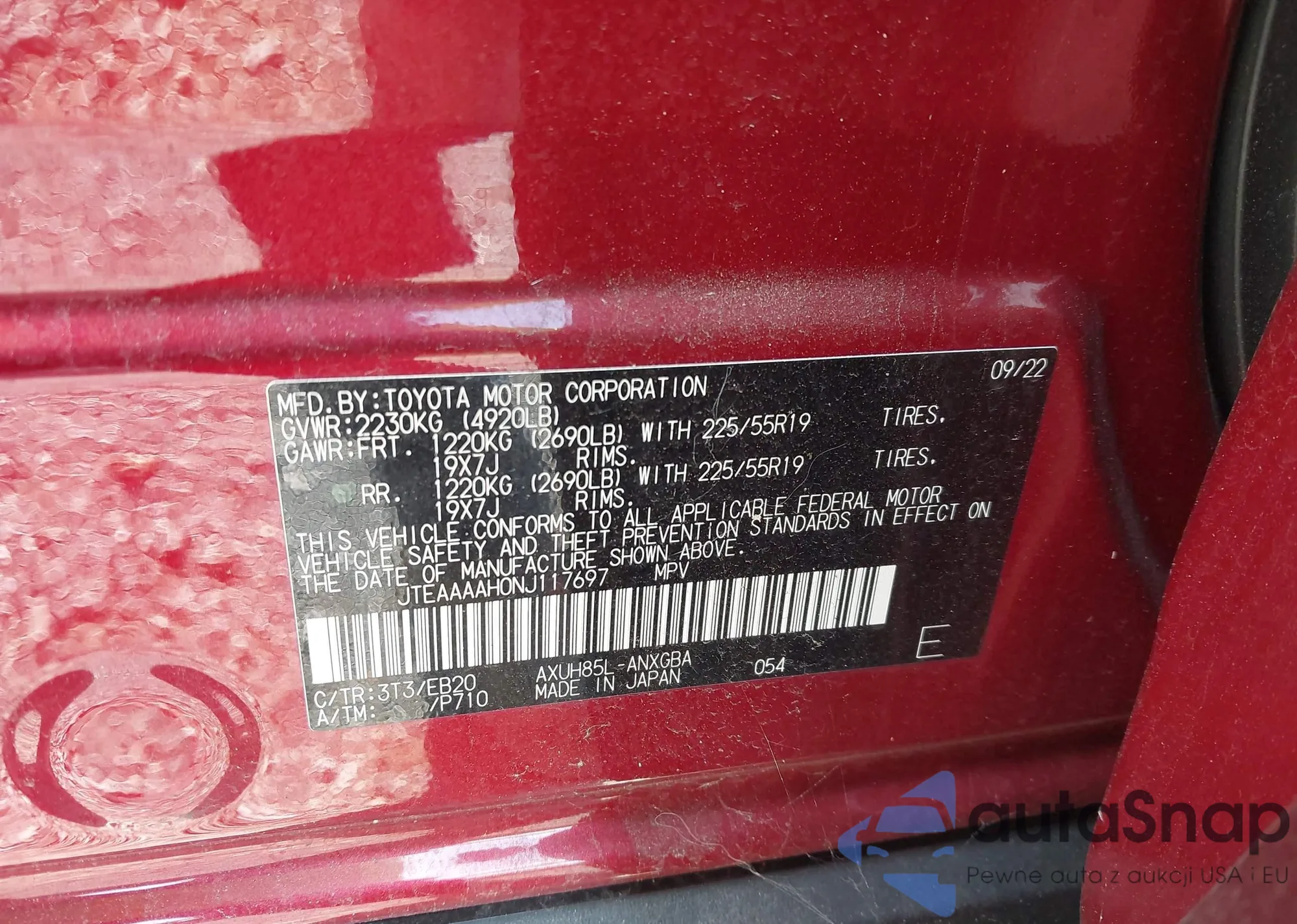• VIN JTEAAAAH0NJ117697