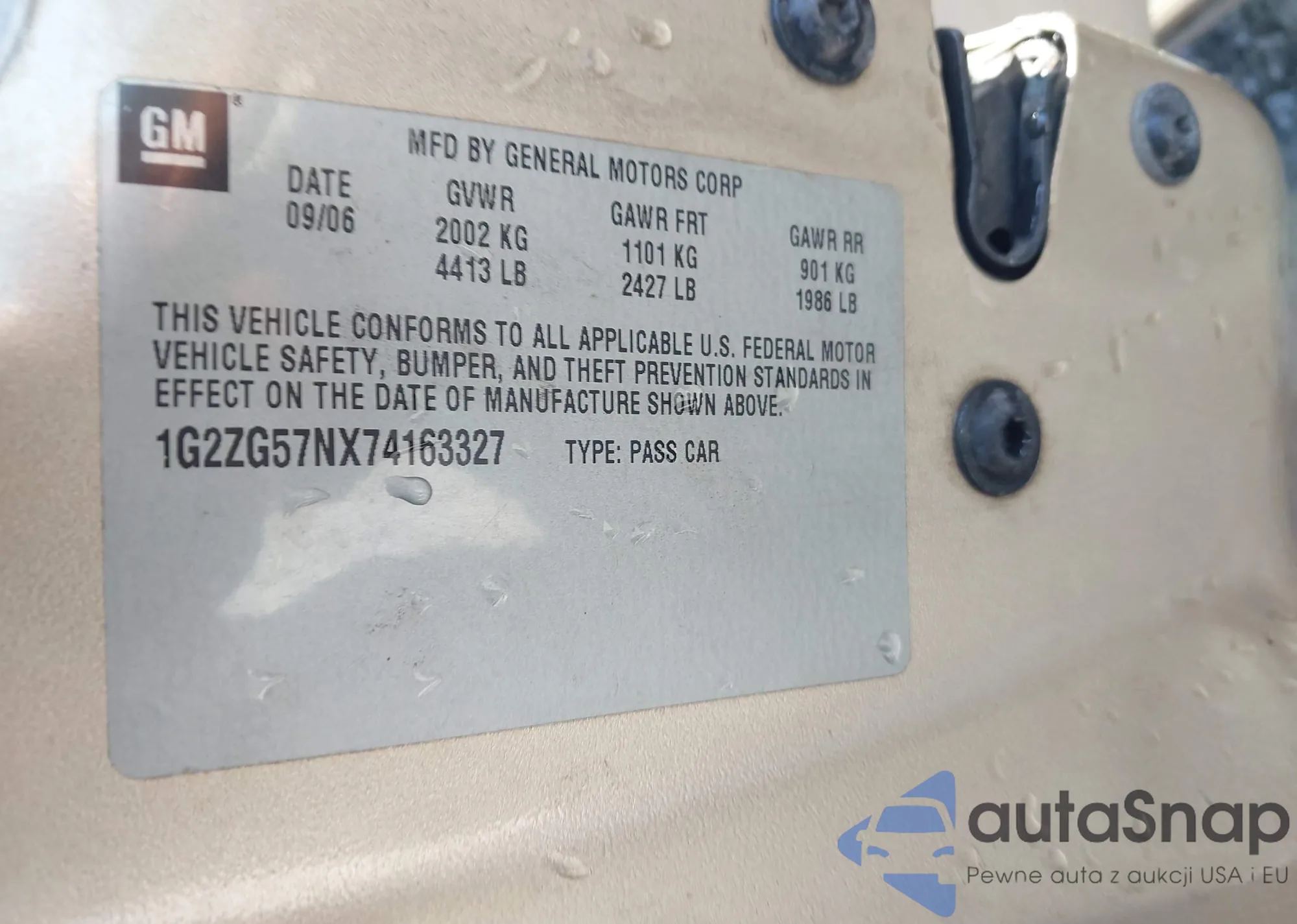LOT: 43231450 VIN: 1G2ZG57NX74163327