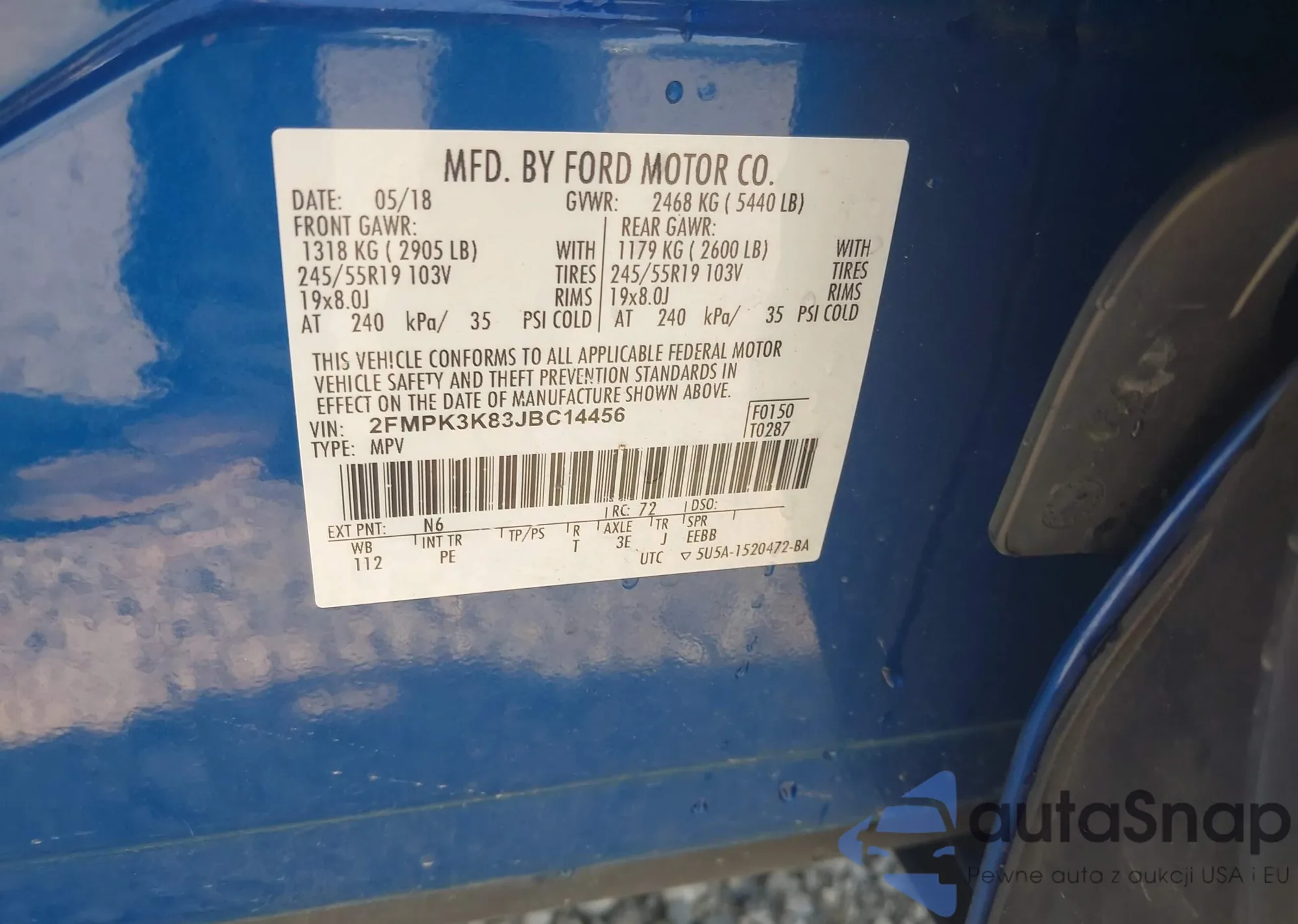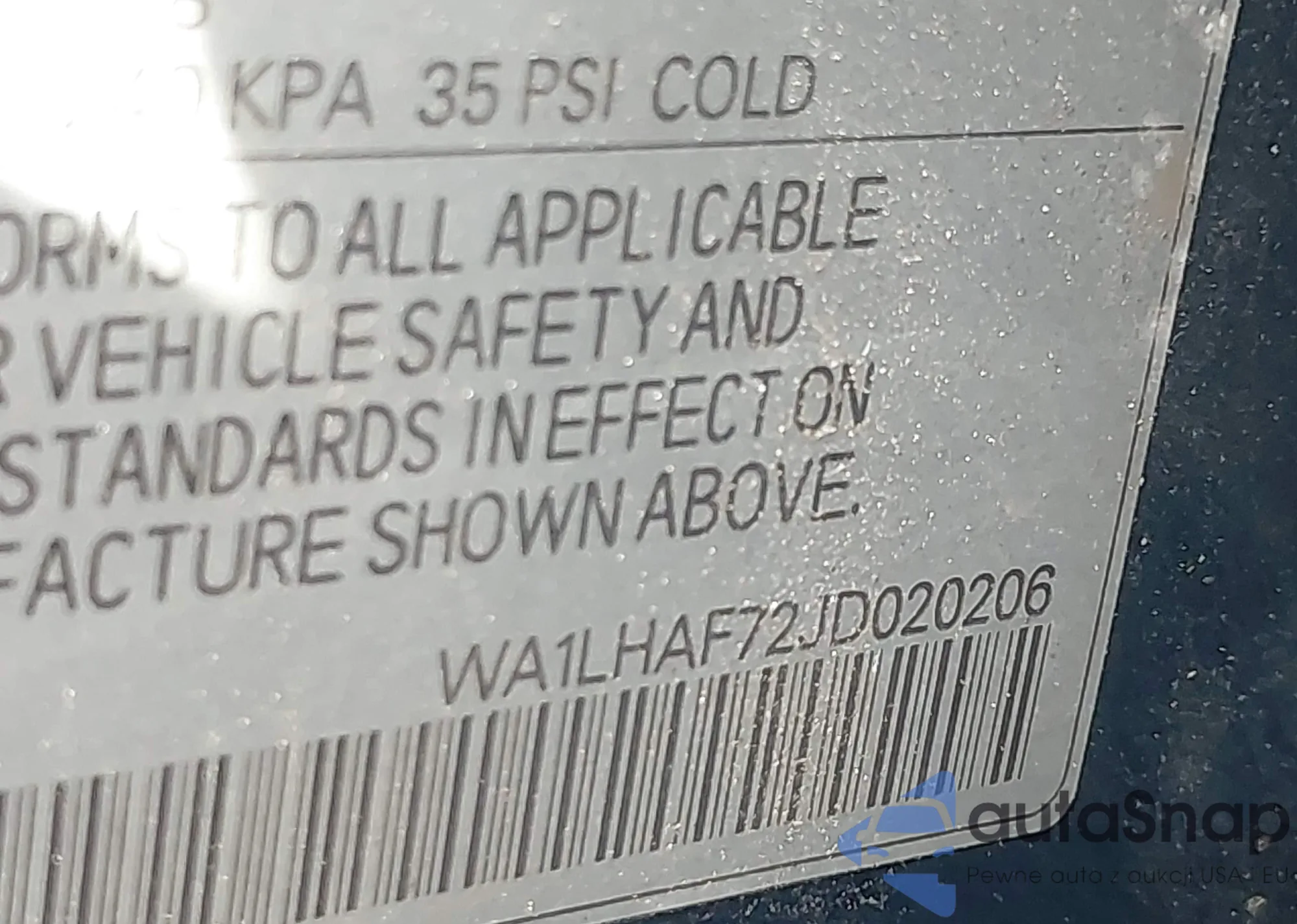• VIN WA1LHAF72JD020206