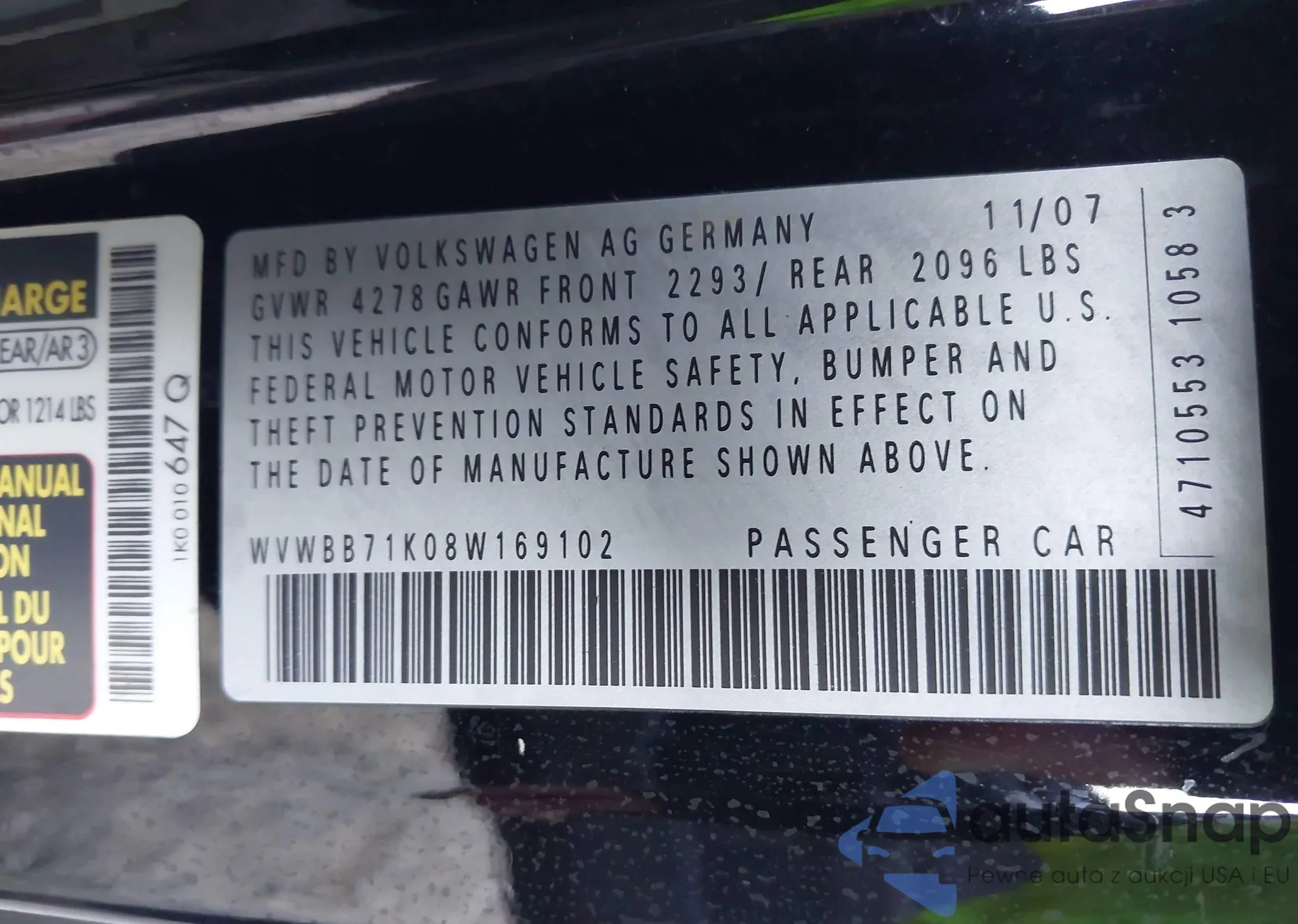 • VIN WBAVB735X8P101739