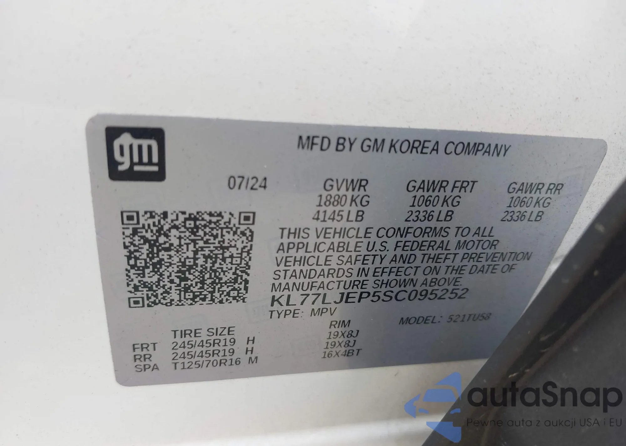 LOT: 43173597 VIN: KL77LJEP5SC095252