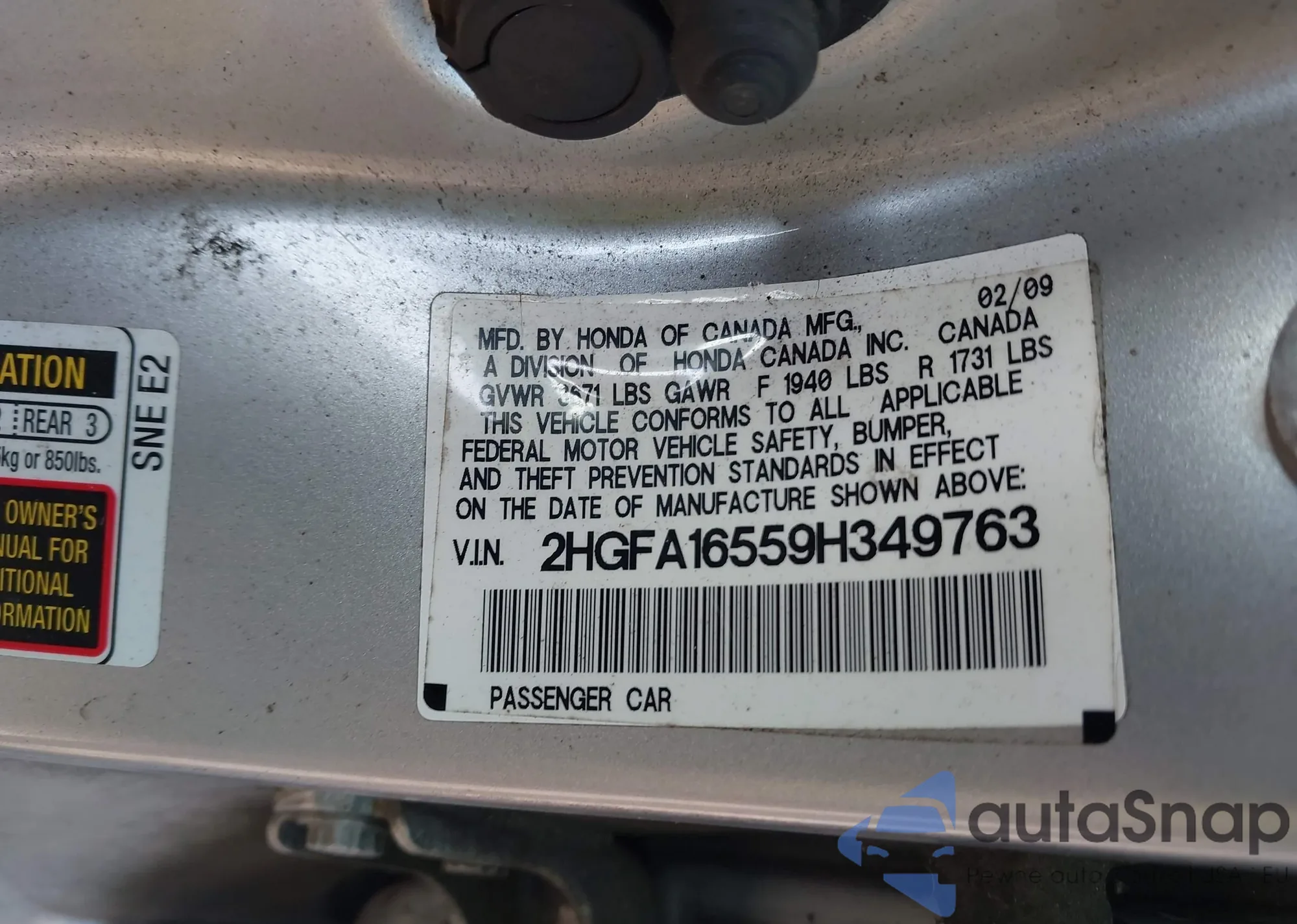• VIN 2HGFA16559H349763
