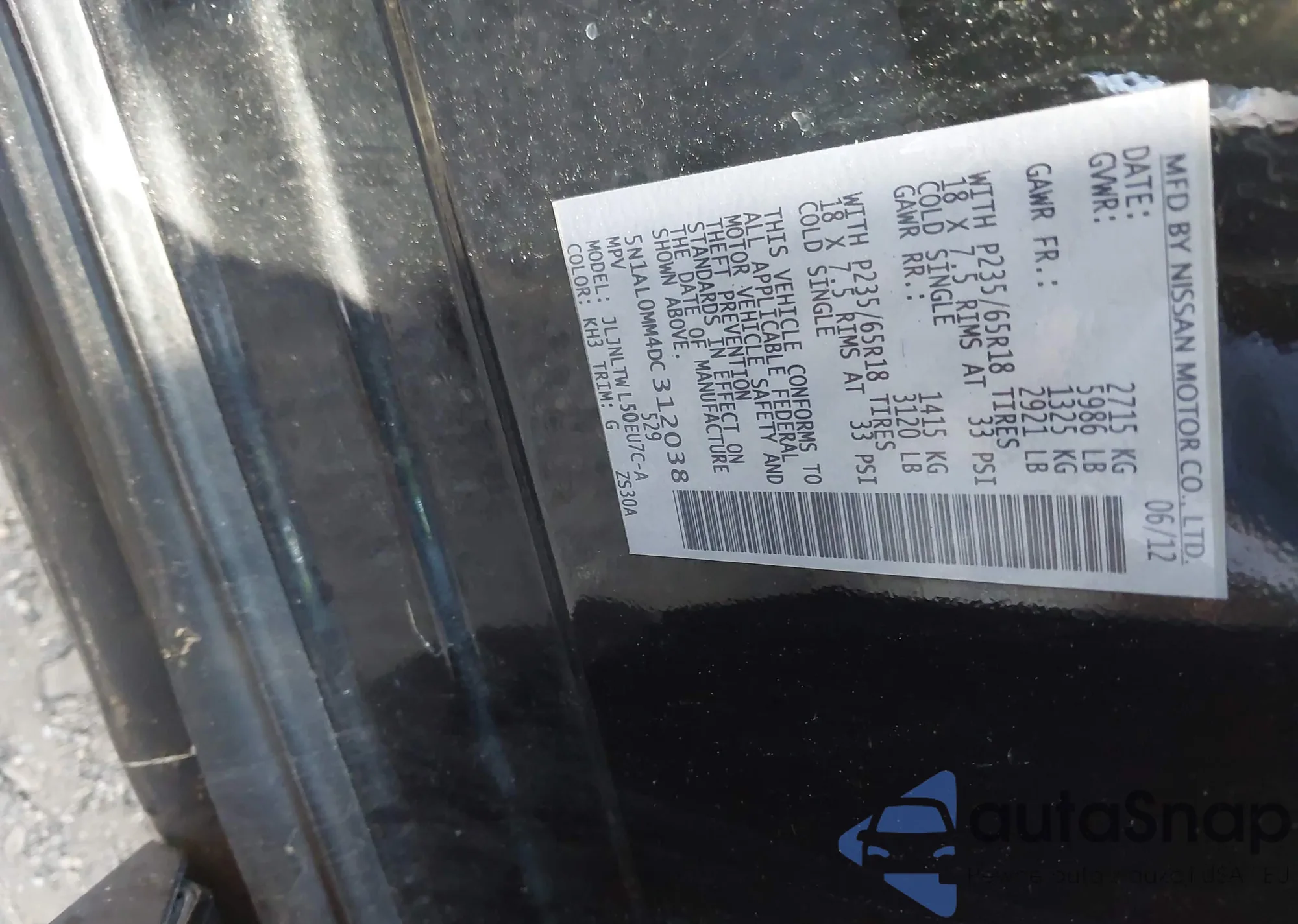 • VIN 5N1AL0MM4DC312038