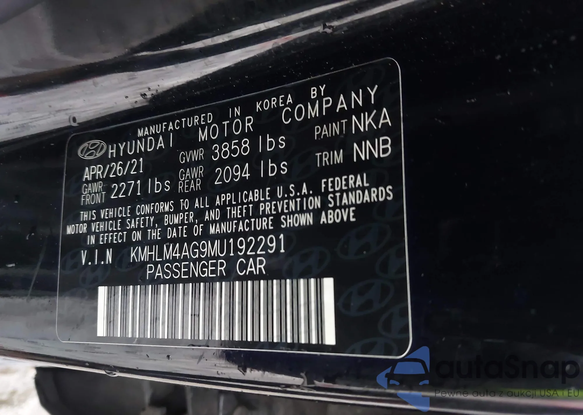LOT: 43186046 VIN: KMHLM4AG9MU192291