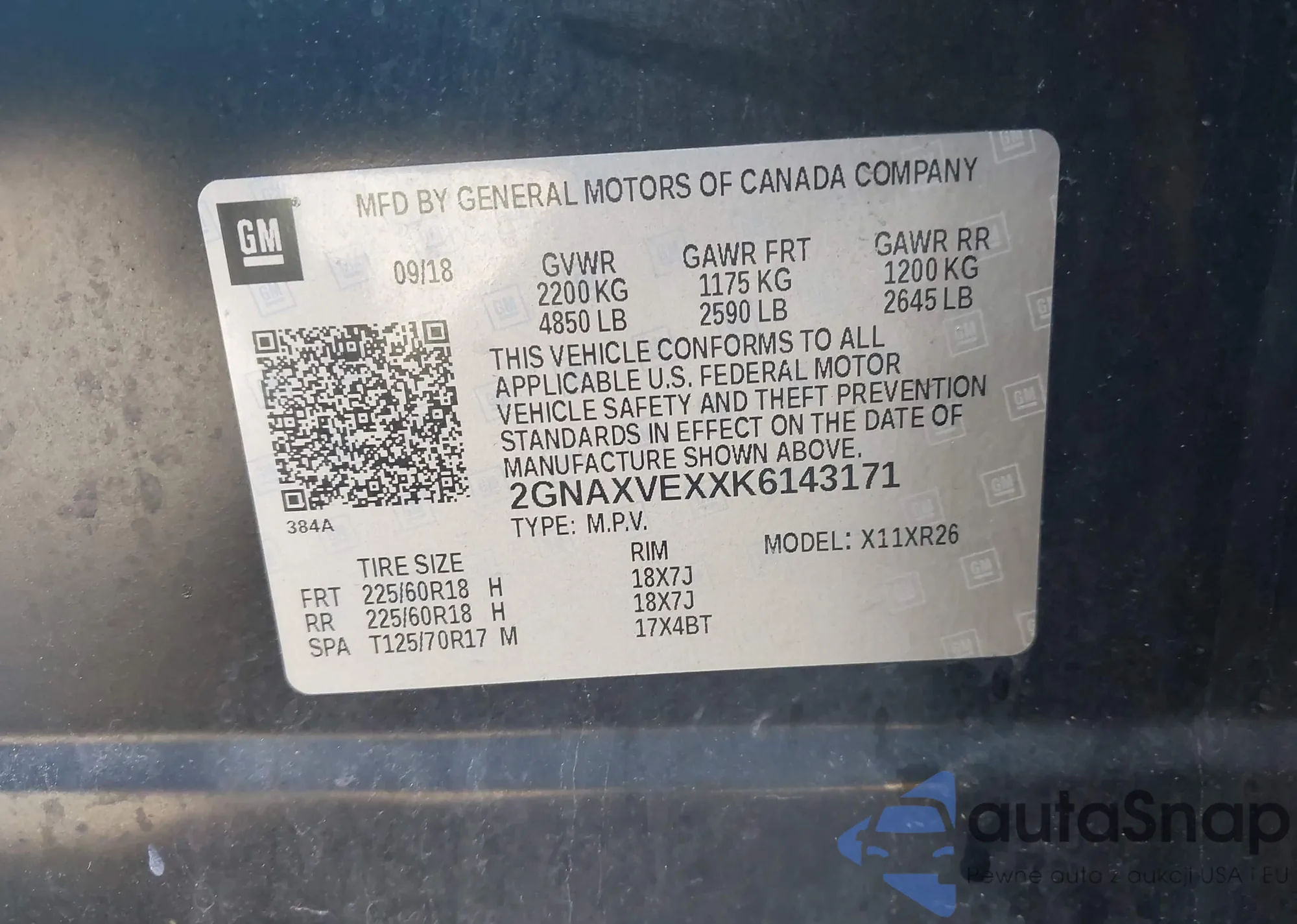 • VIN 2GNAXVEXXK6143171