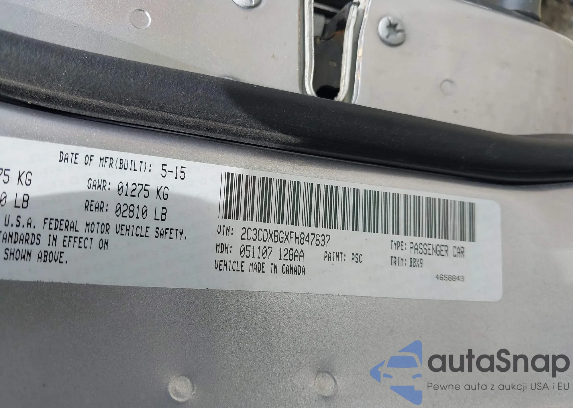 LOT: 42922896 VIN: 2C3CDXBGXFH847637