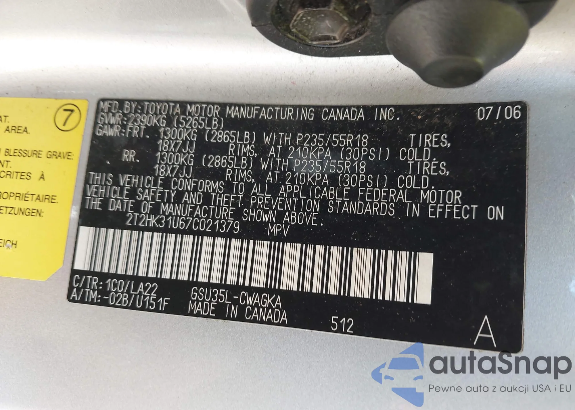 • VIN 2T2HK31U67C021379
