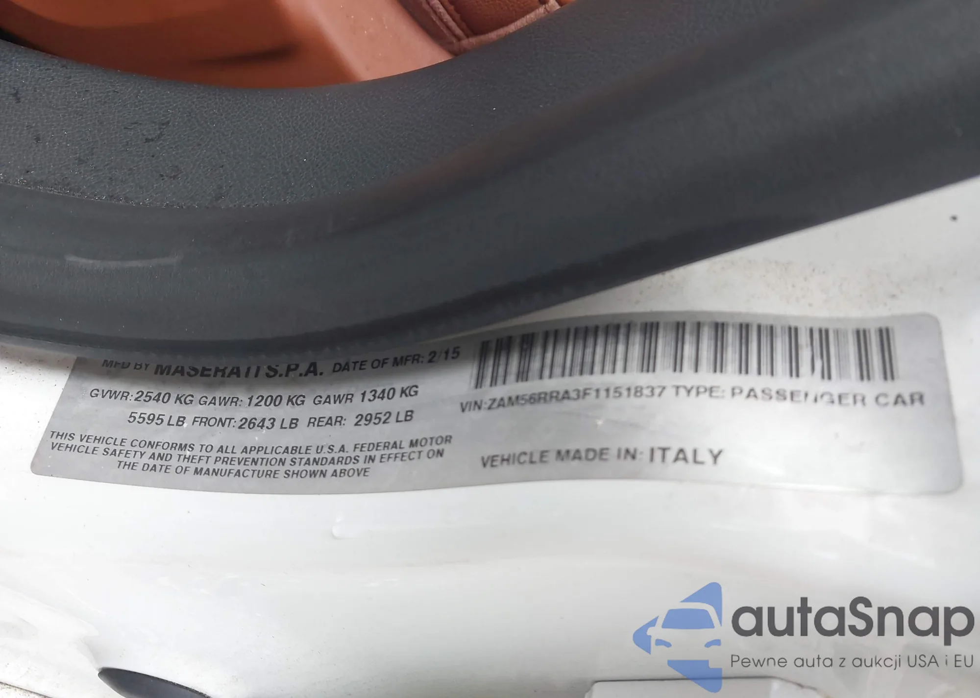 LOT: 42988332 VIN: ZAM56RRA3F1151837