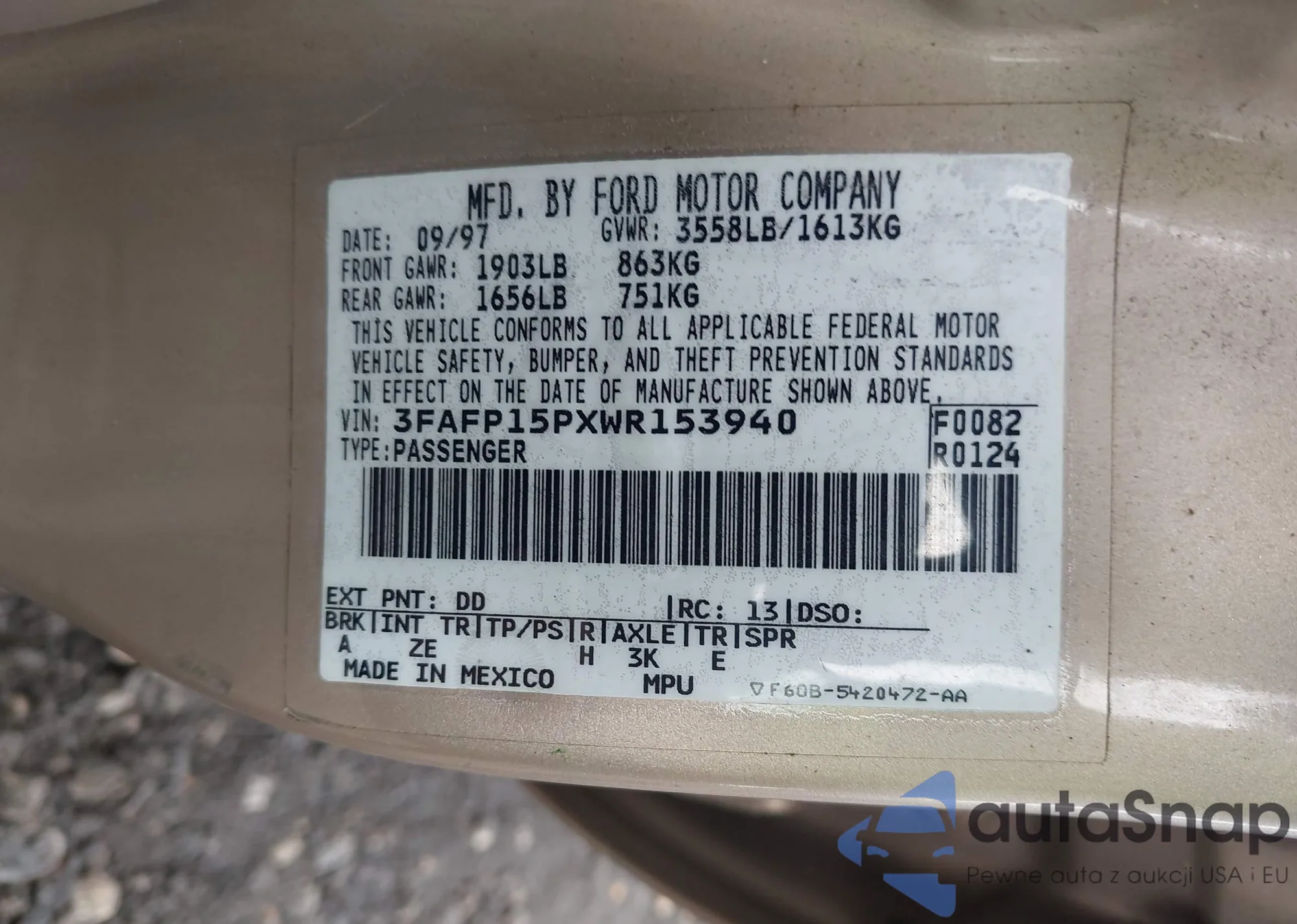 • VIN 3FAFP15PXWR153940