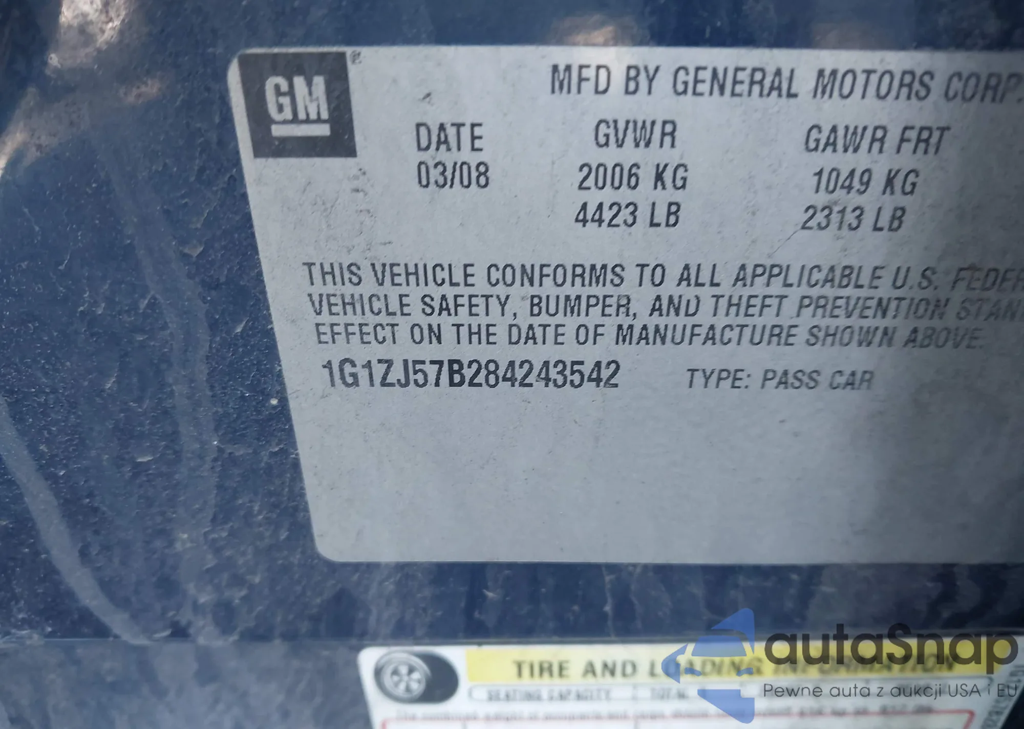 LOT: 43341813 VIN: 1G1ZJ57B284243542
