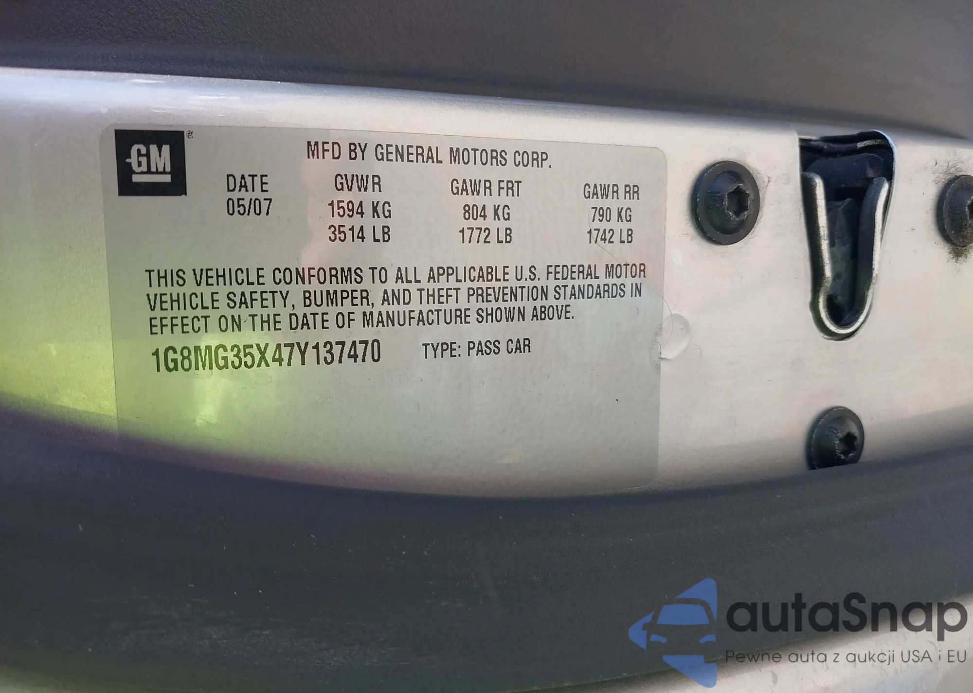 • VIN 1G8MG35X47Y137470