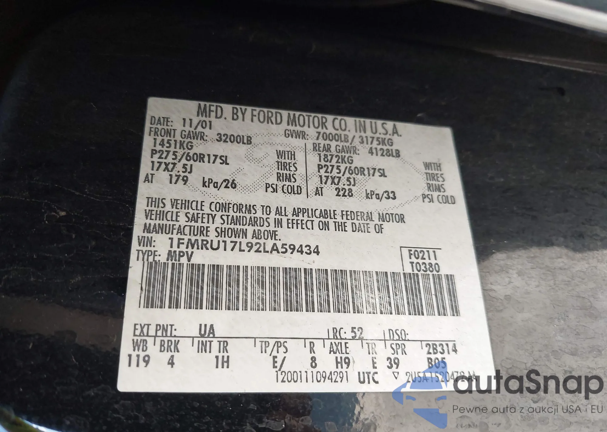 LOT: 43239191 VIN: 1FMDU64E62UA18783