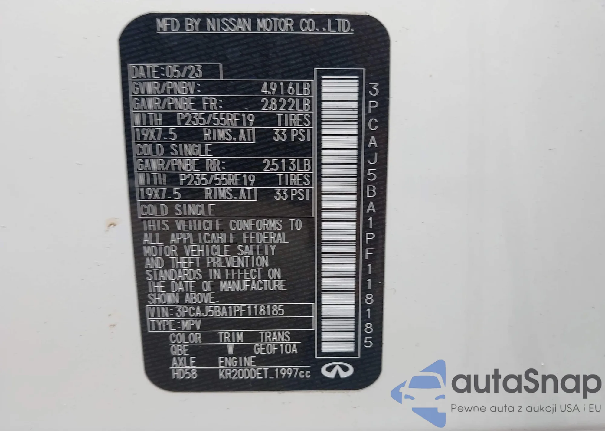 • VIN 3PCAJ5BA1PF118185
