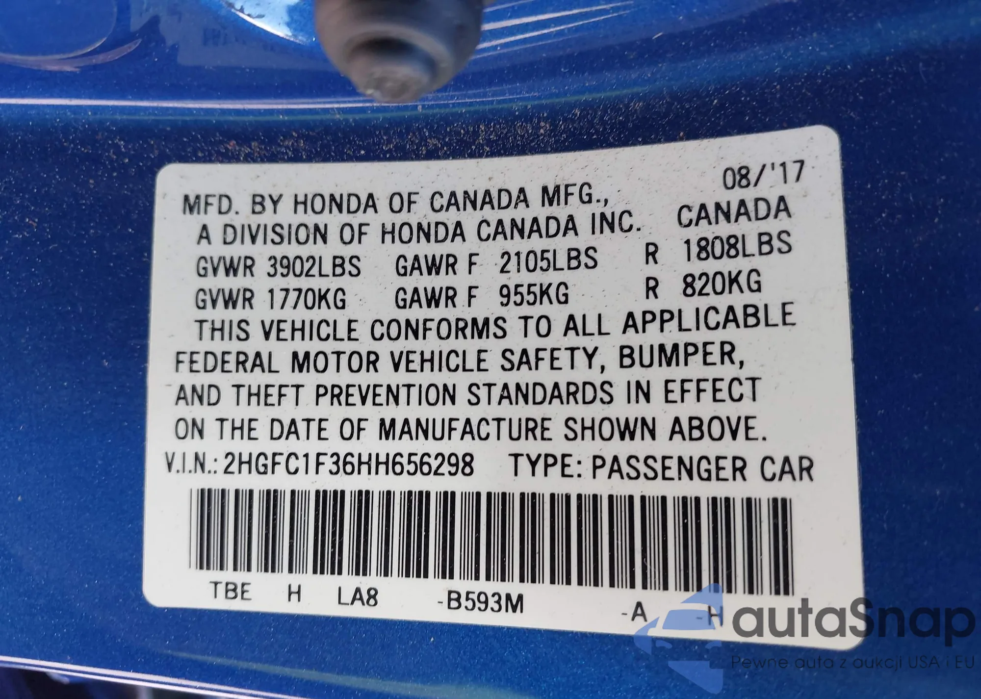 • VIN 2HGFC1F36HH656298