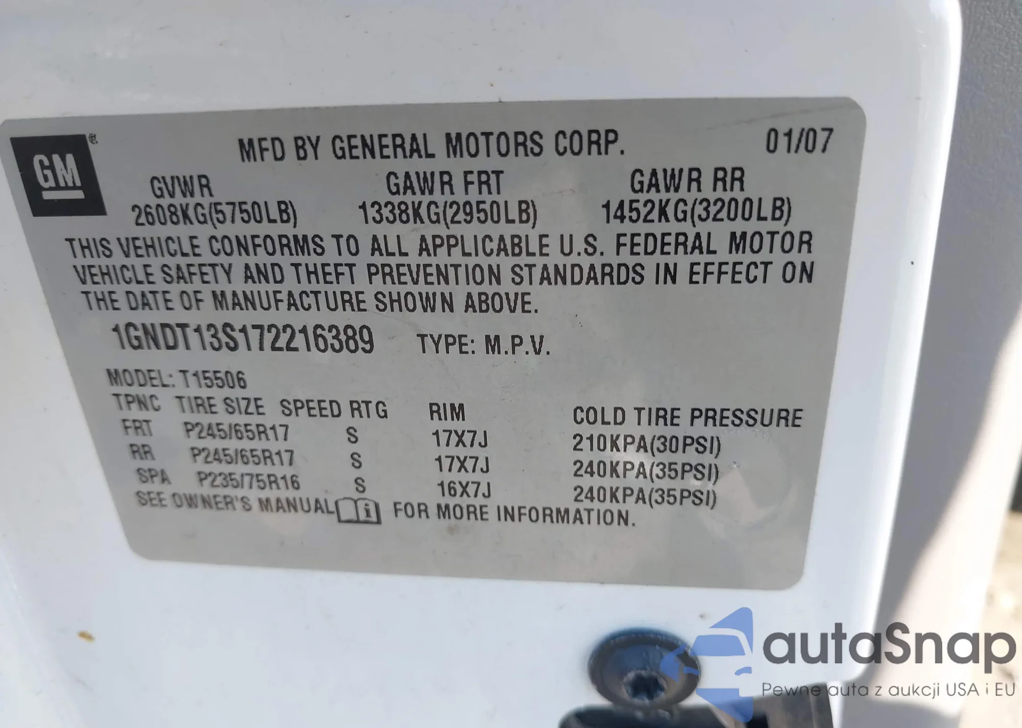 • VIN 1GNDT13S172216389