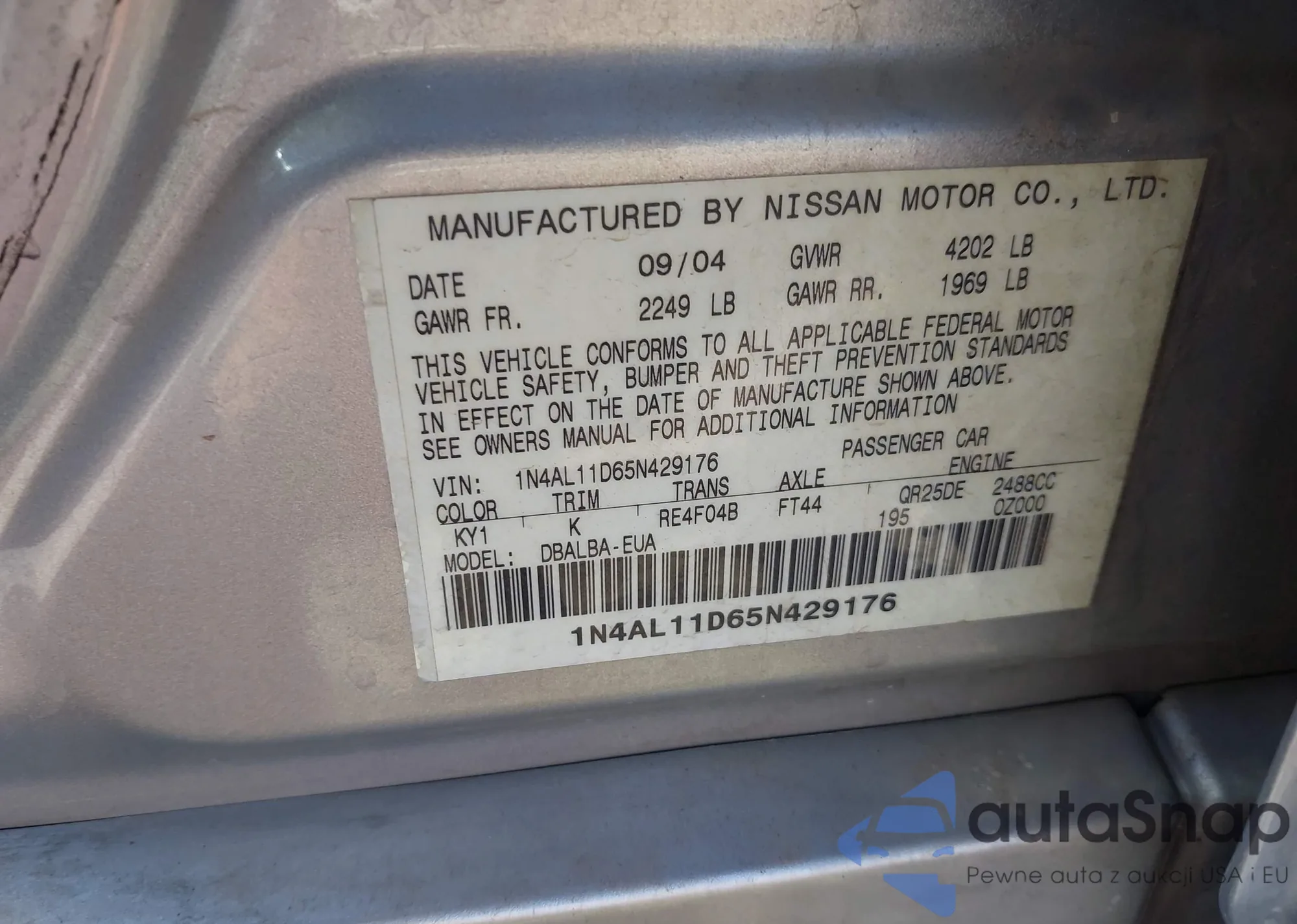 LOT: 43379497 VIN: 1N4AL11D65N429176