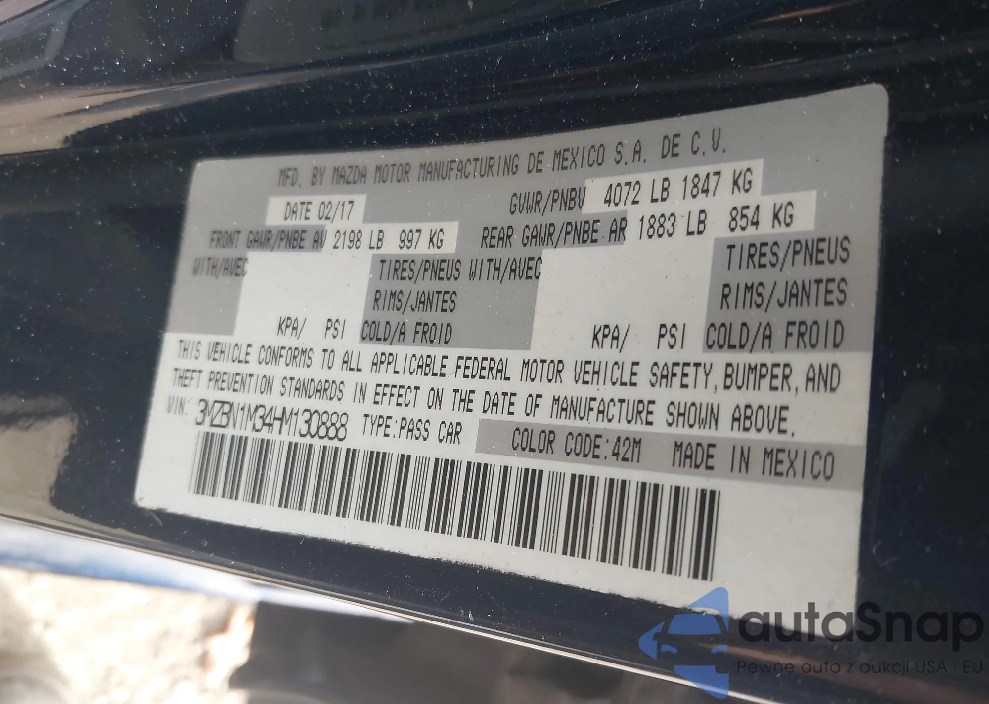 LOT: 43368003 VIN: 1N4BL4DV7SN396839
