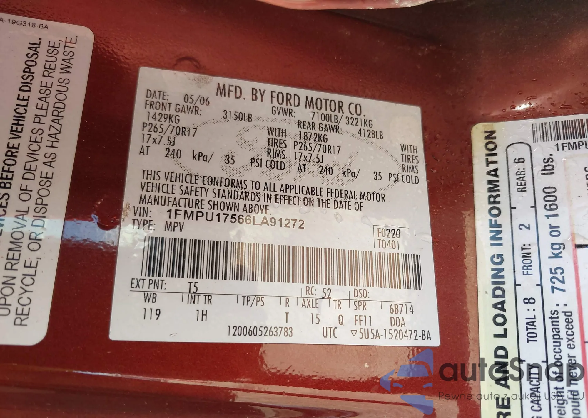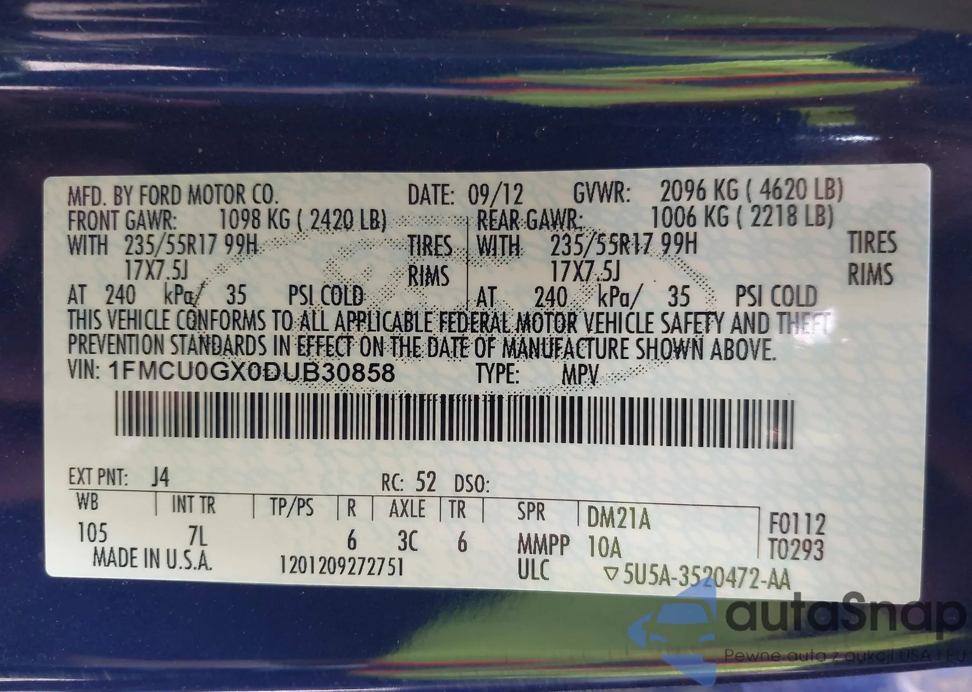 • VIN 1FMCU0GX0DUB30858