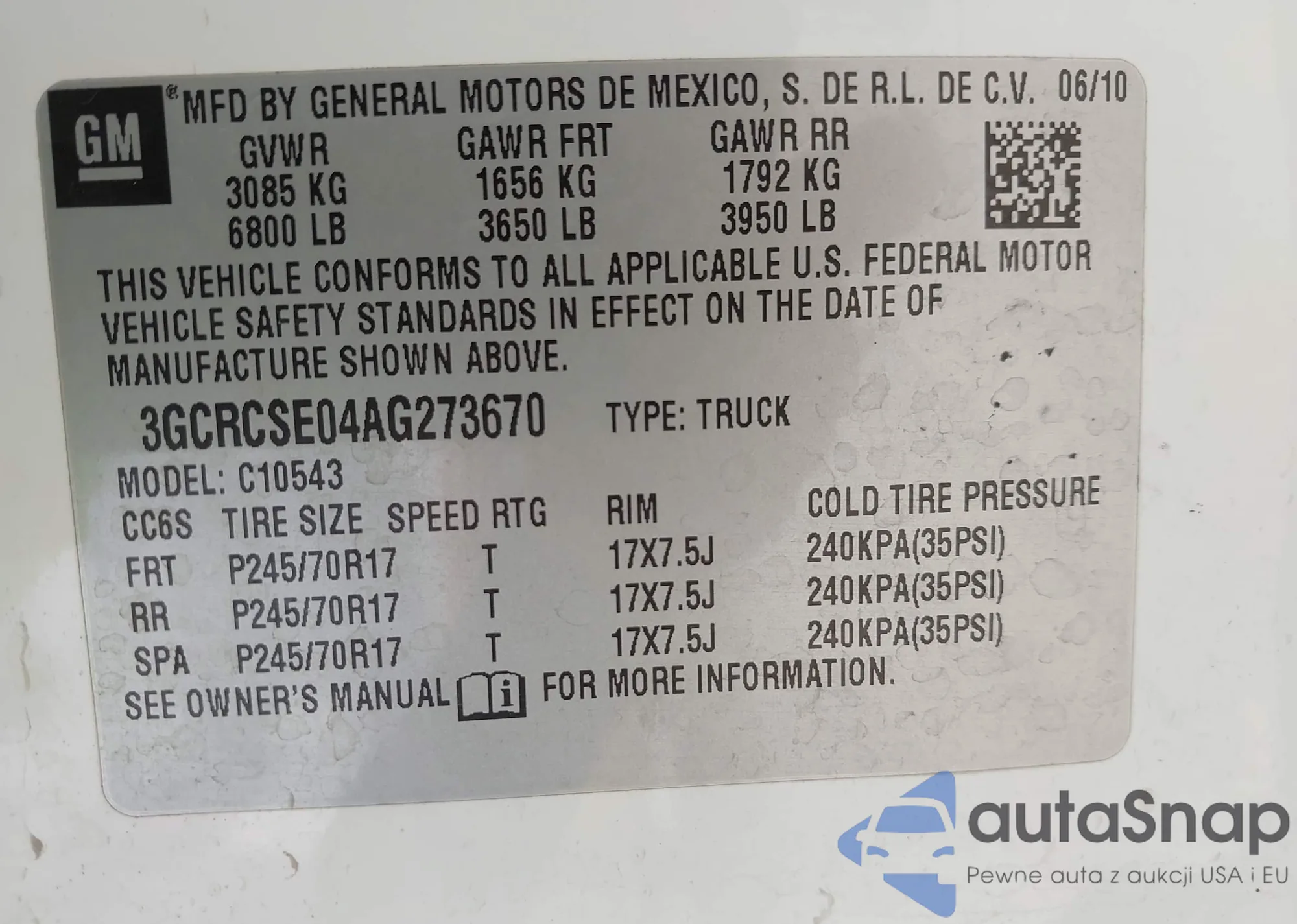 • VIN 1N4BL4DV7SN396839