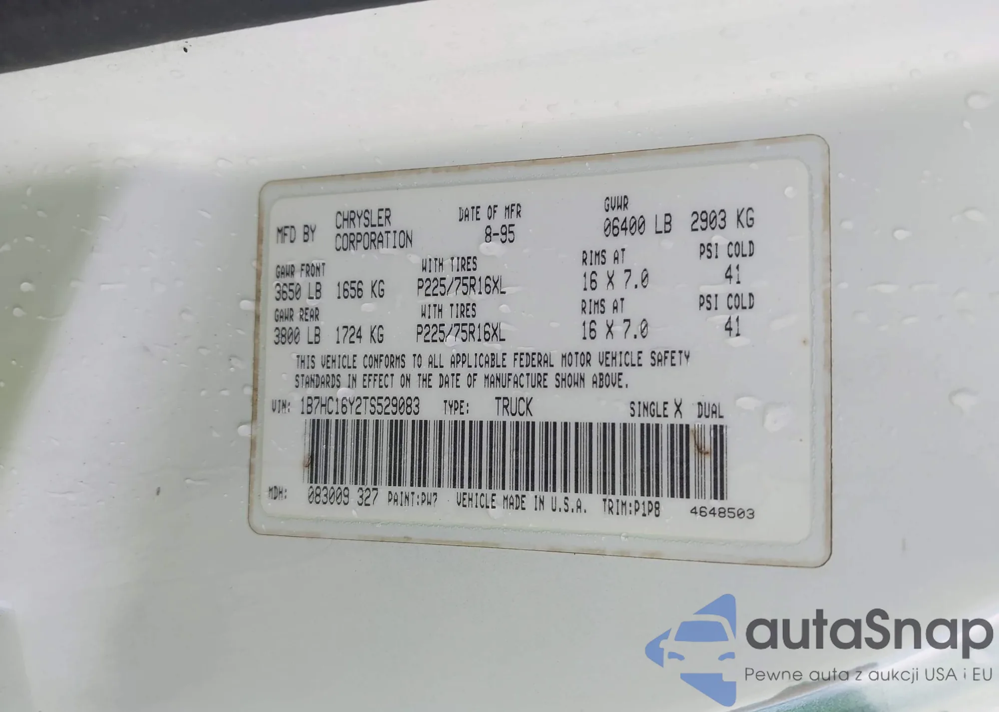 • VIN 1B7HC16Y2TS529083