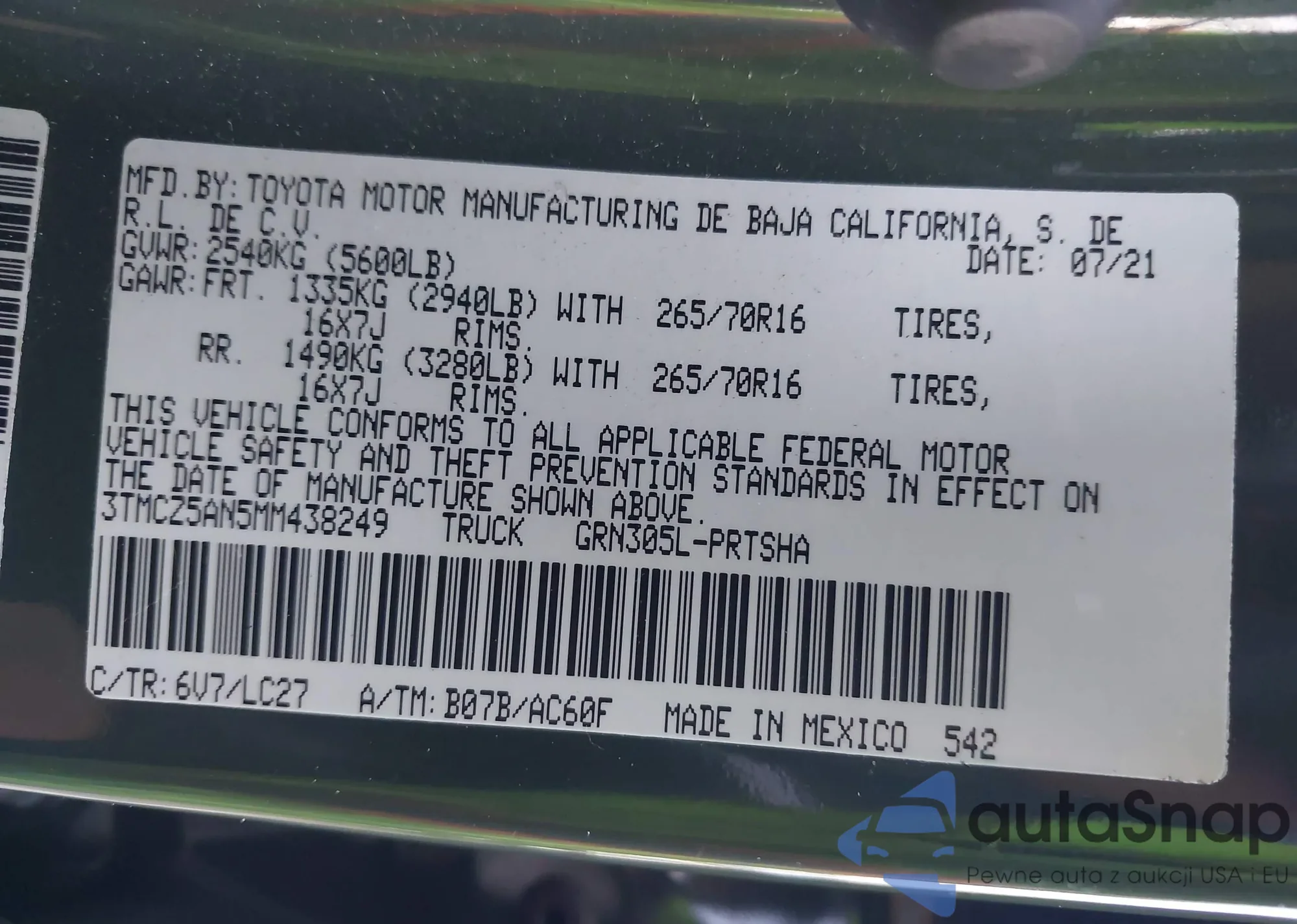 • VIN 4T3ZA3BB3BU043850