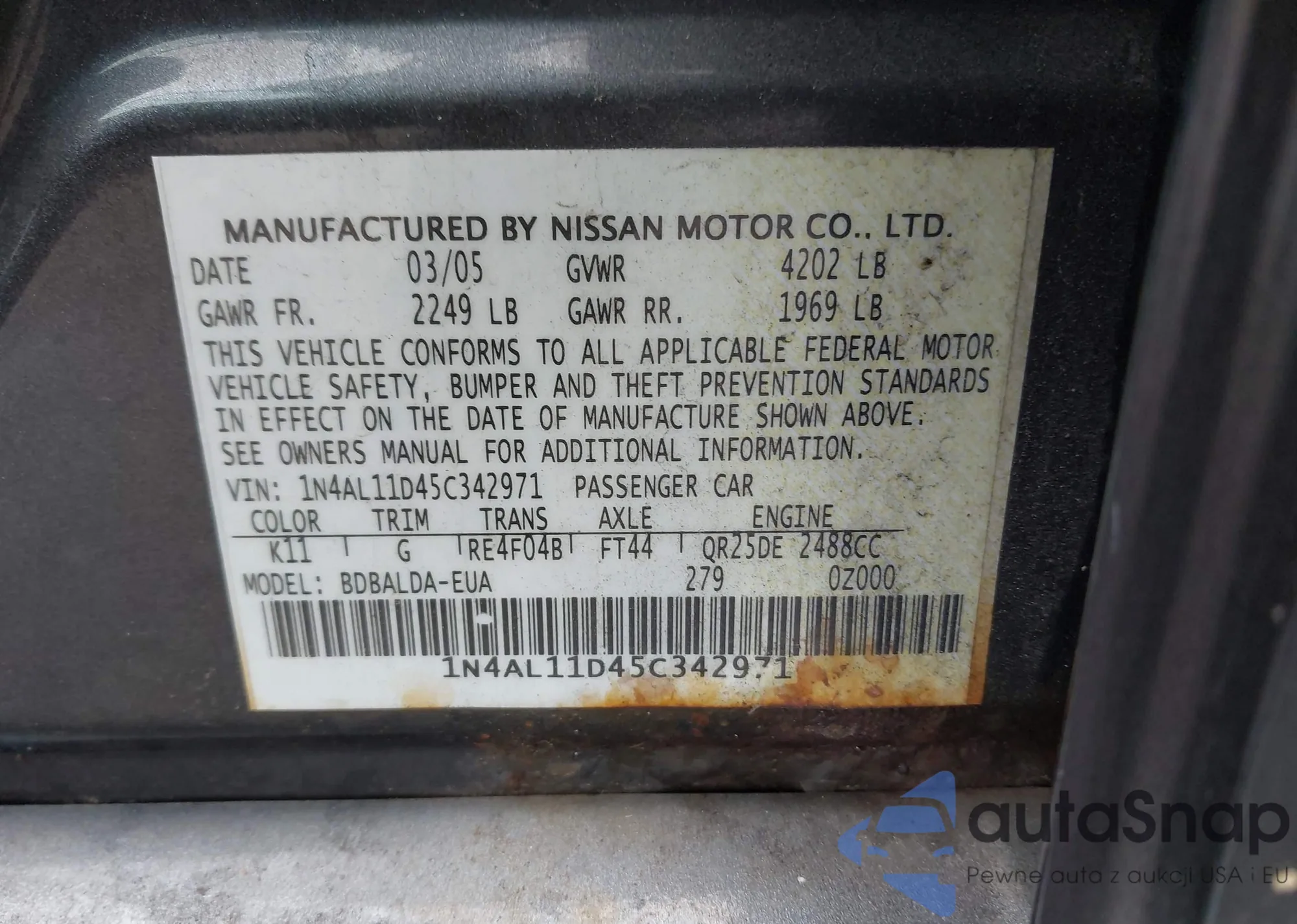 • VIN 1N4AL11D45C342971