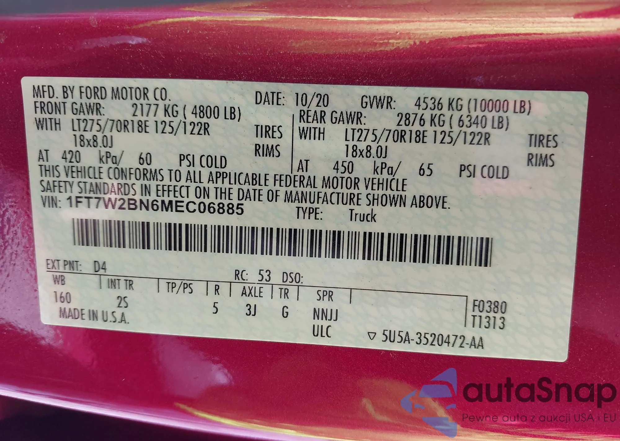• VIN 1FT7W2BN6MEC06885