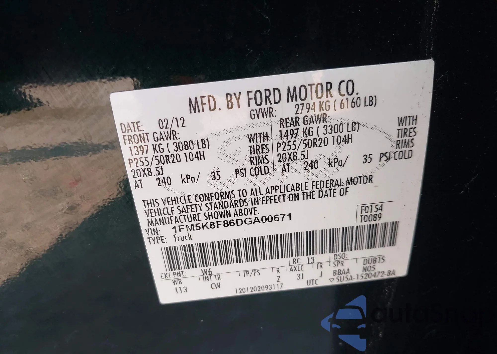 • VIN 1FT7W2BT8CEC41120