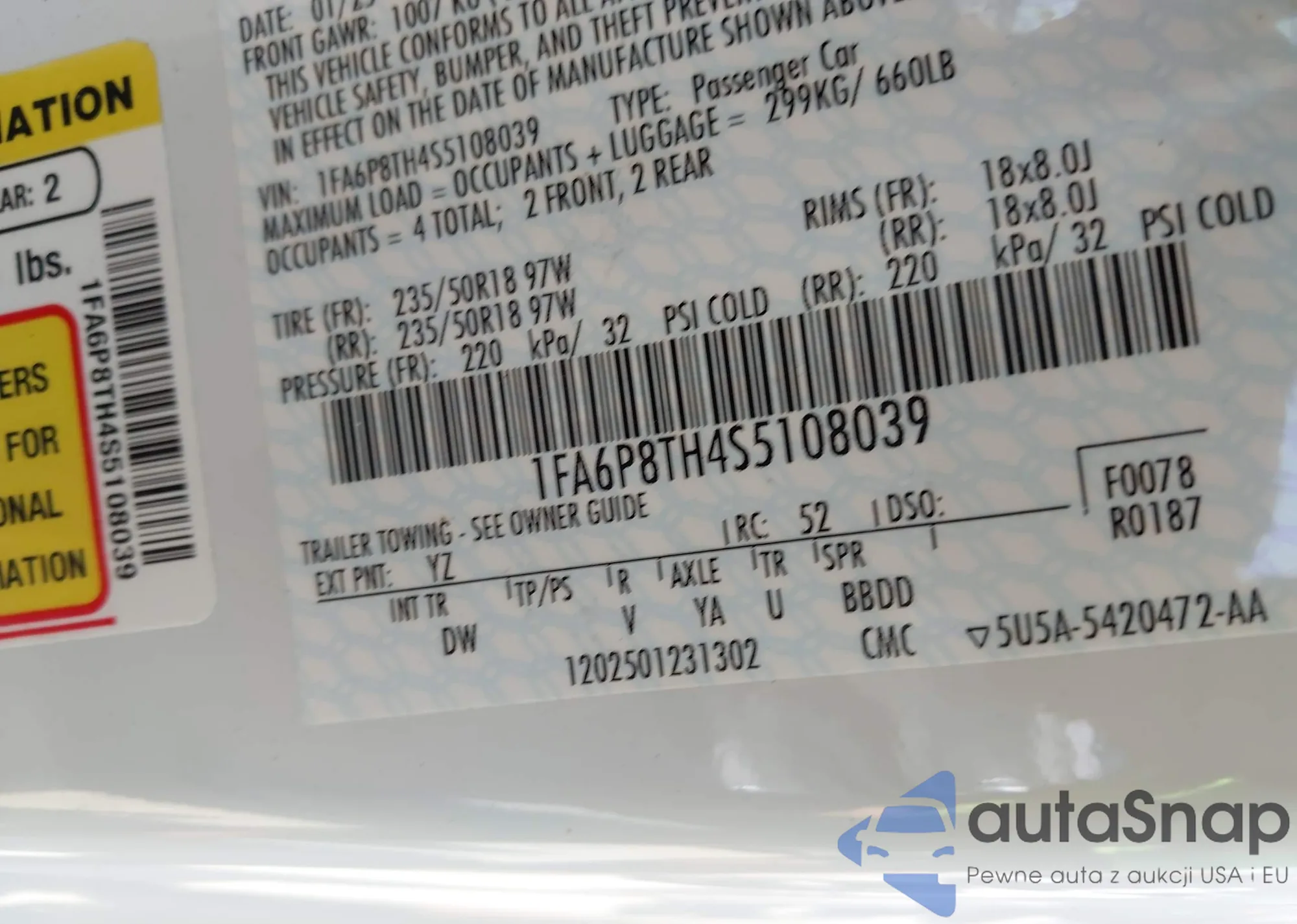• VIN 1FA6P8TH4S5108039