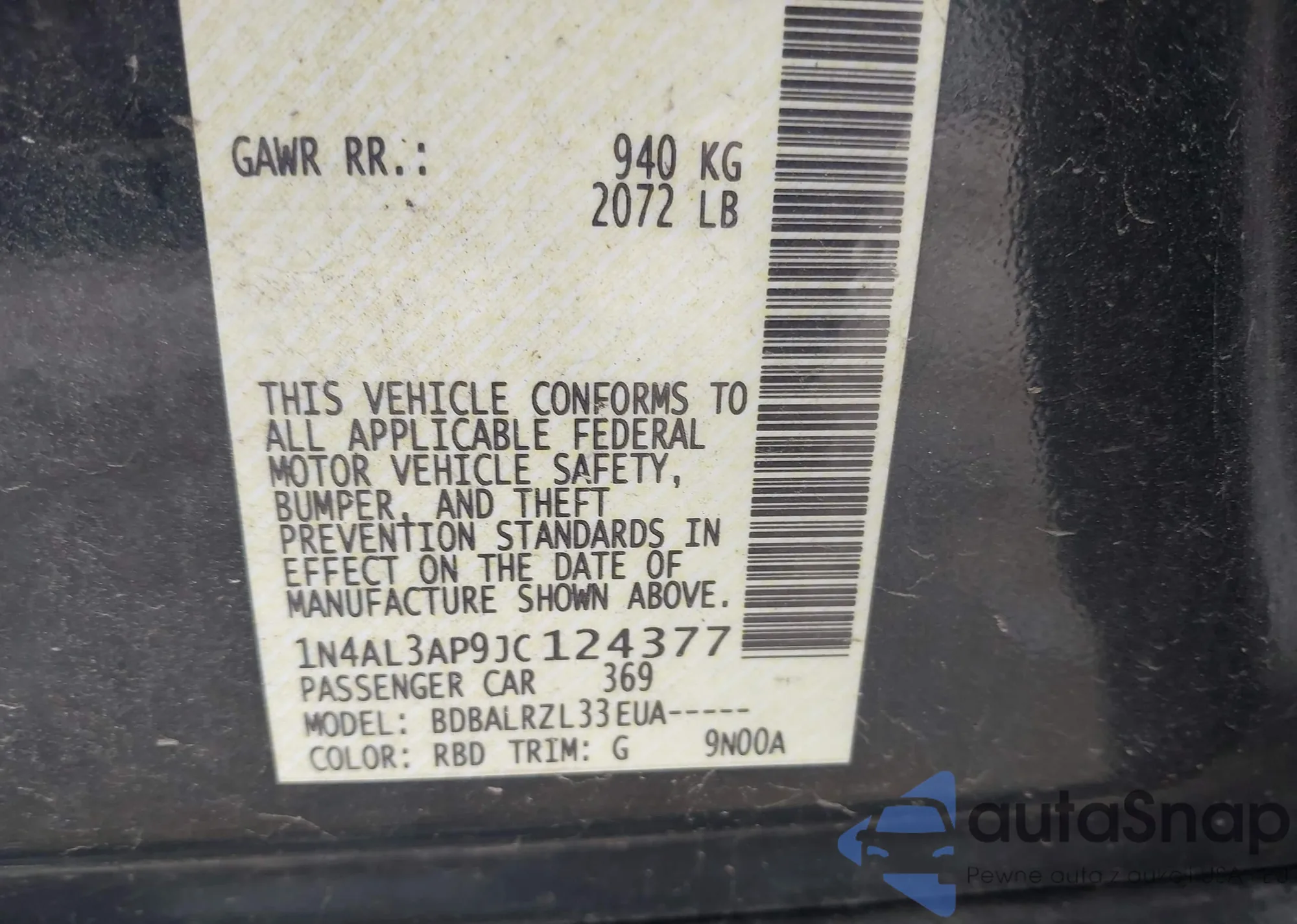 • VIN 1N4AL3AP9FC234336