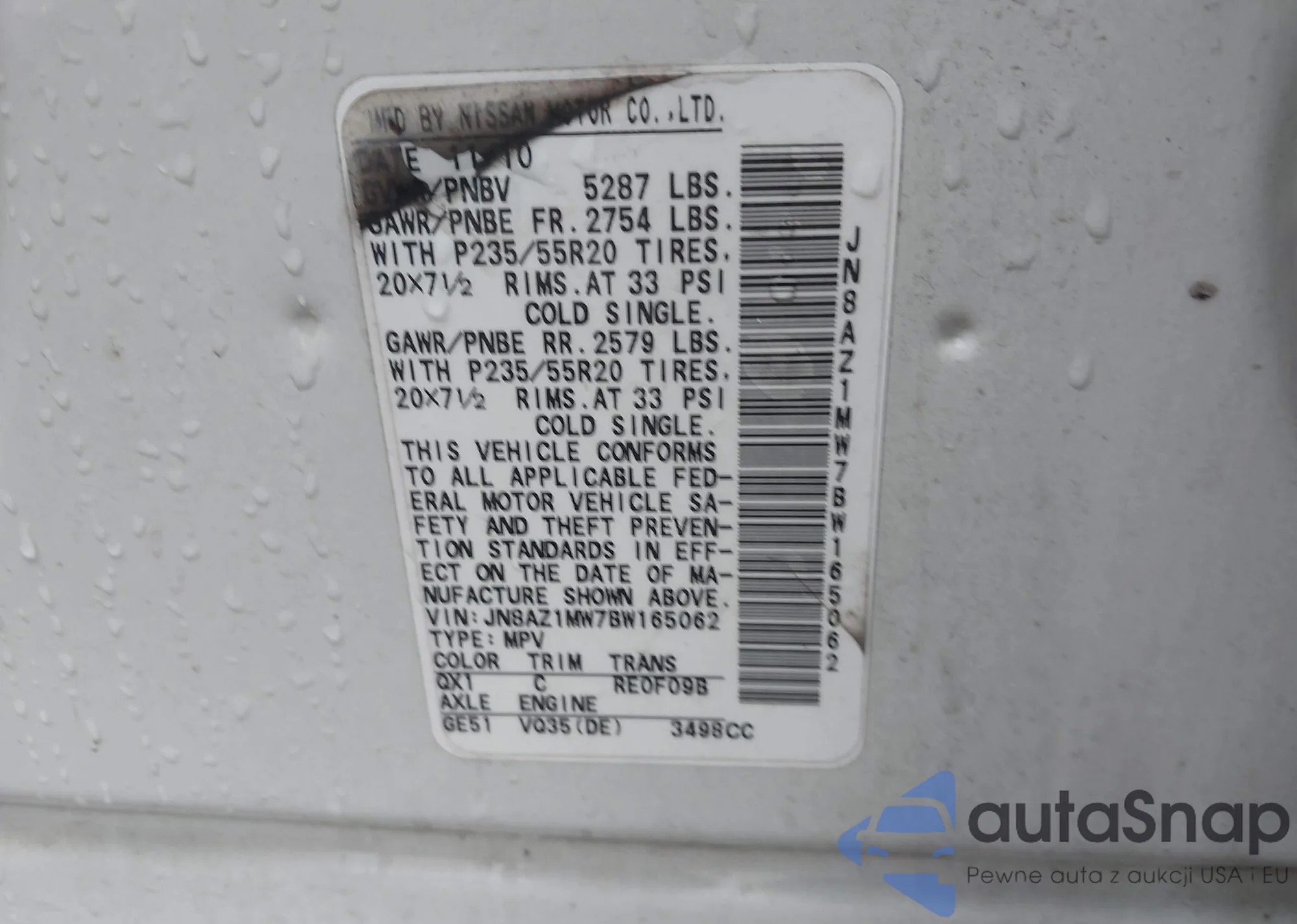 • VIN JN8AZ1MW7BW165062