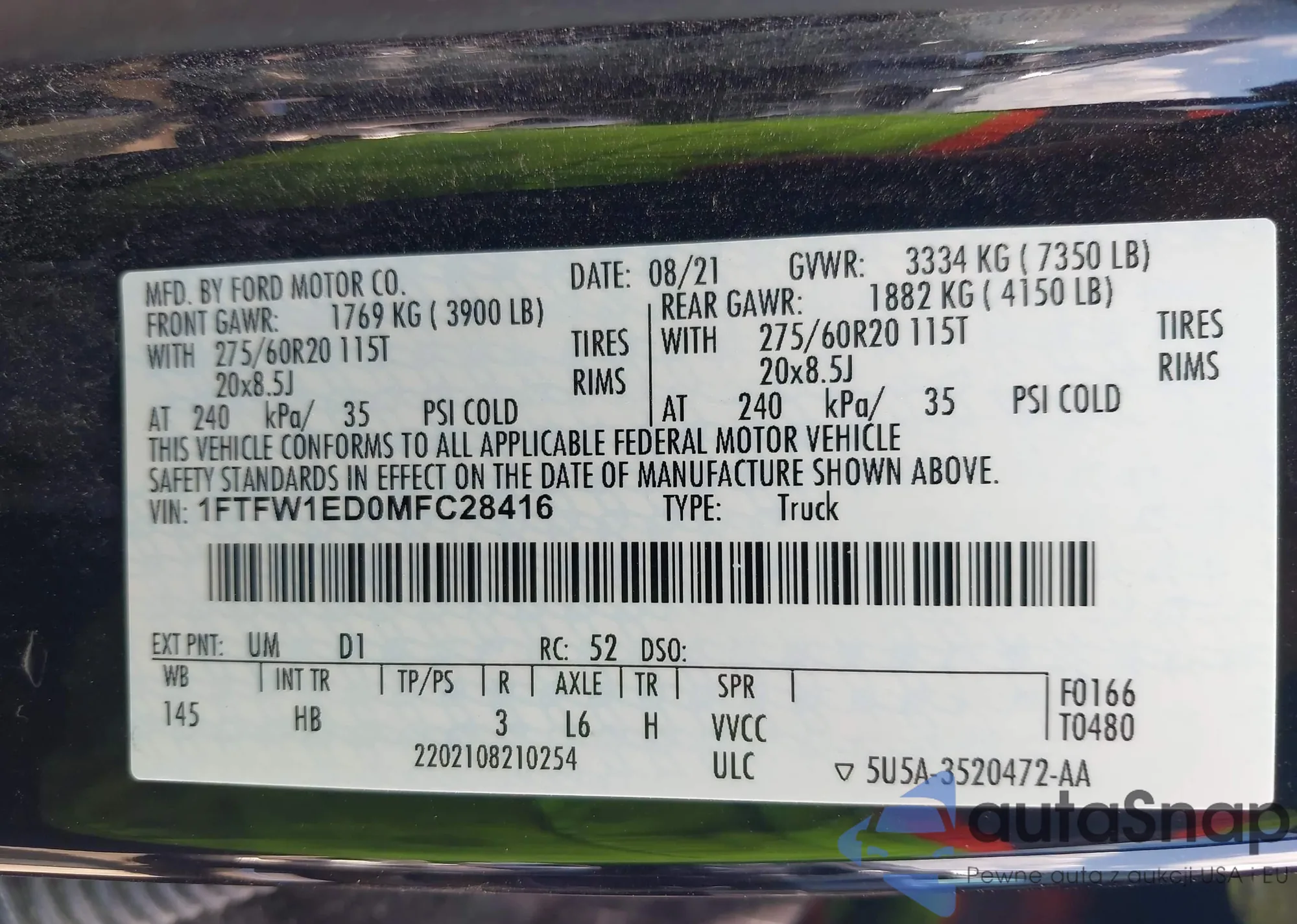 • VIN 1FTFW1ED0MFC28416