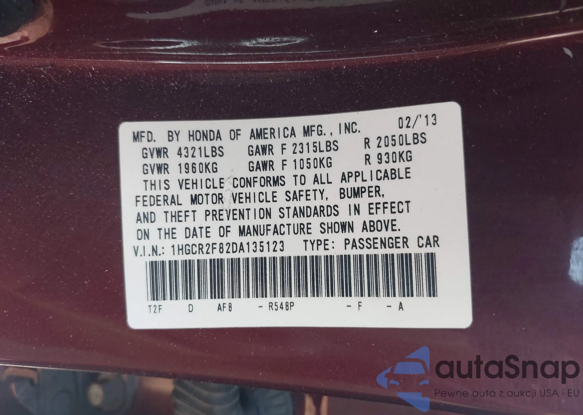 • VIN 5J6RE4H76BL006625