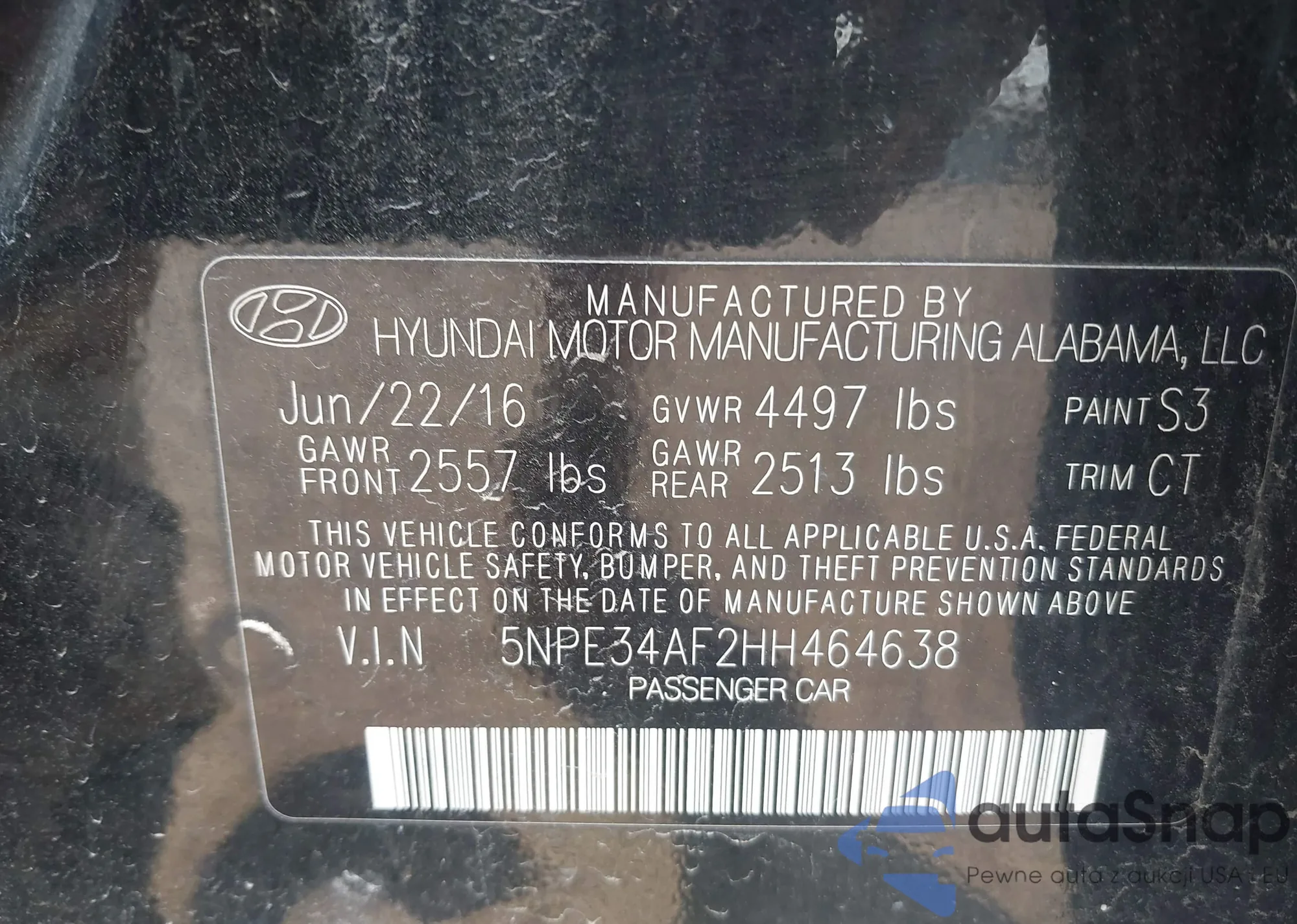 LOT: 42997026 VIN: 5NPE34AF2HH464638