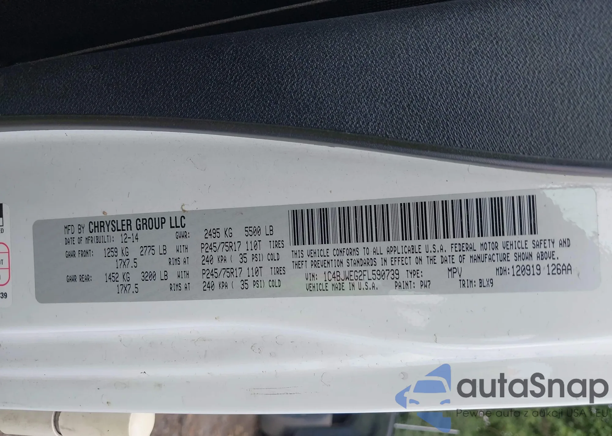 • VIN 1C4BJWEG2FL590739