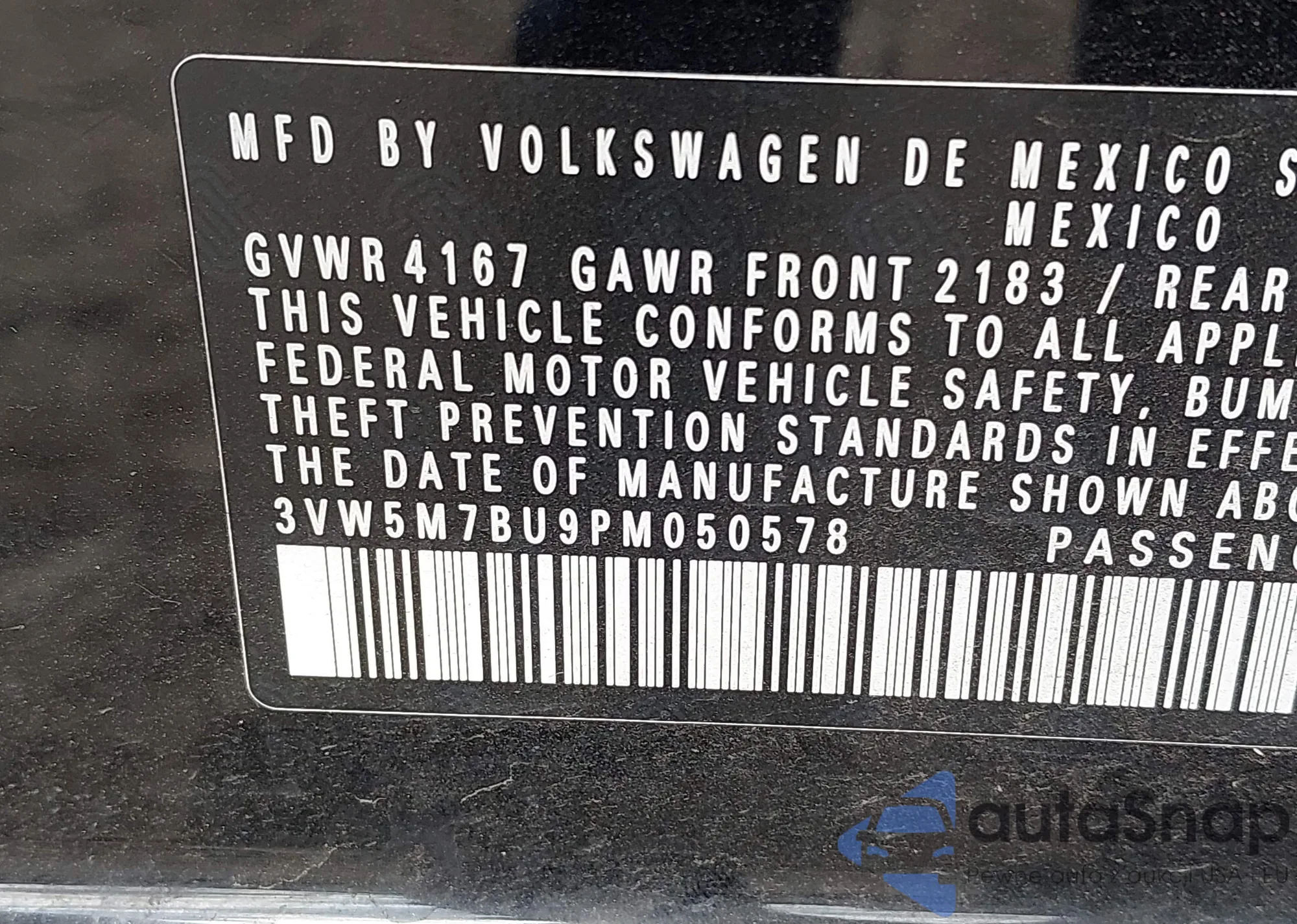 • VIN 3VW5M7BU9PM050578
