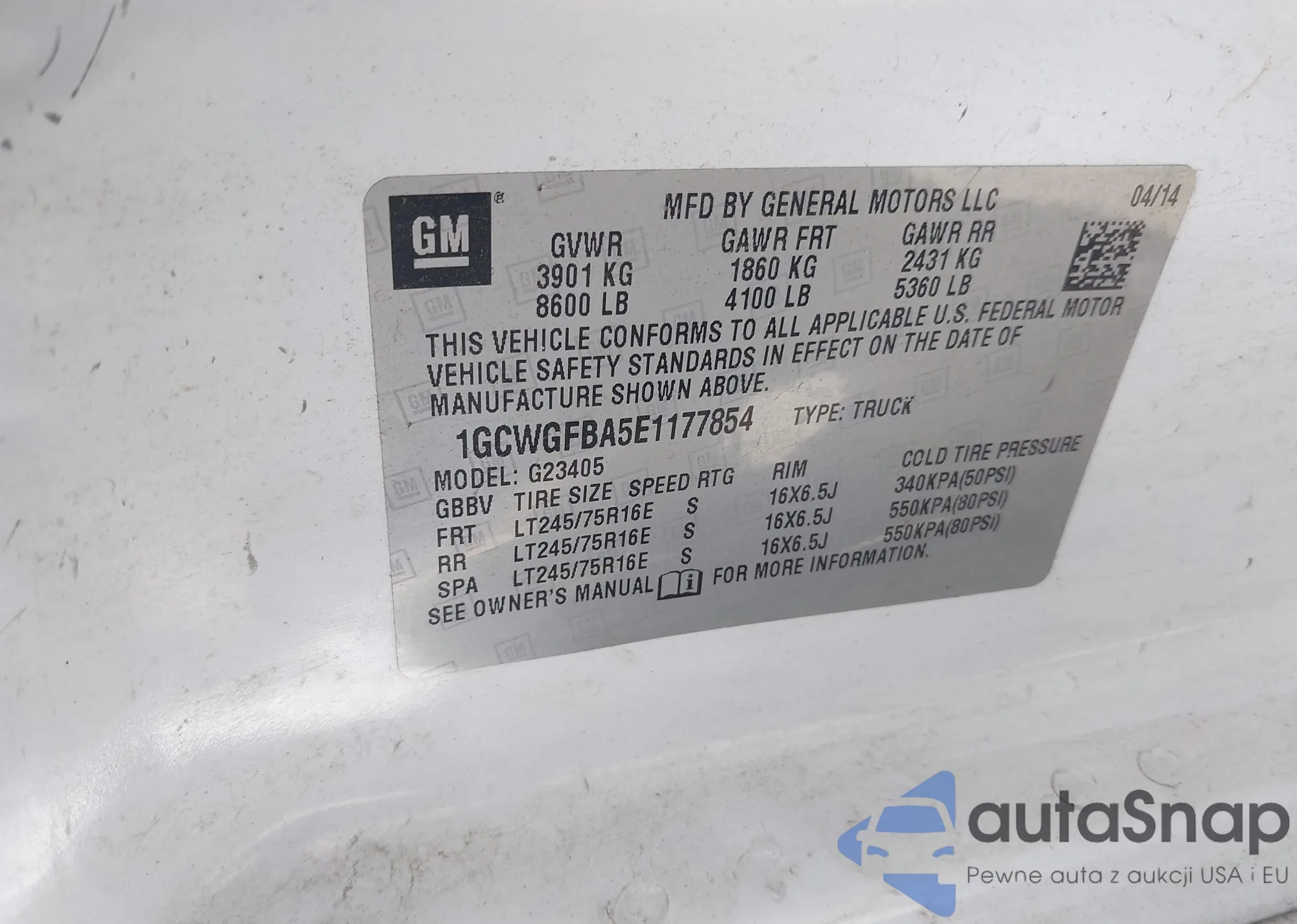 LOT: 43121829 VIN: 1GCWGFBA5E1177854