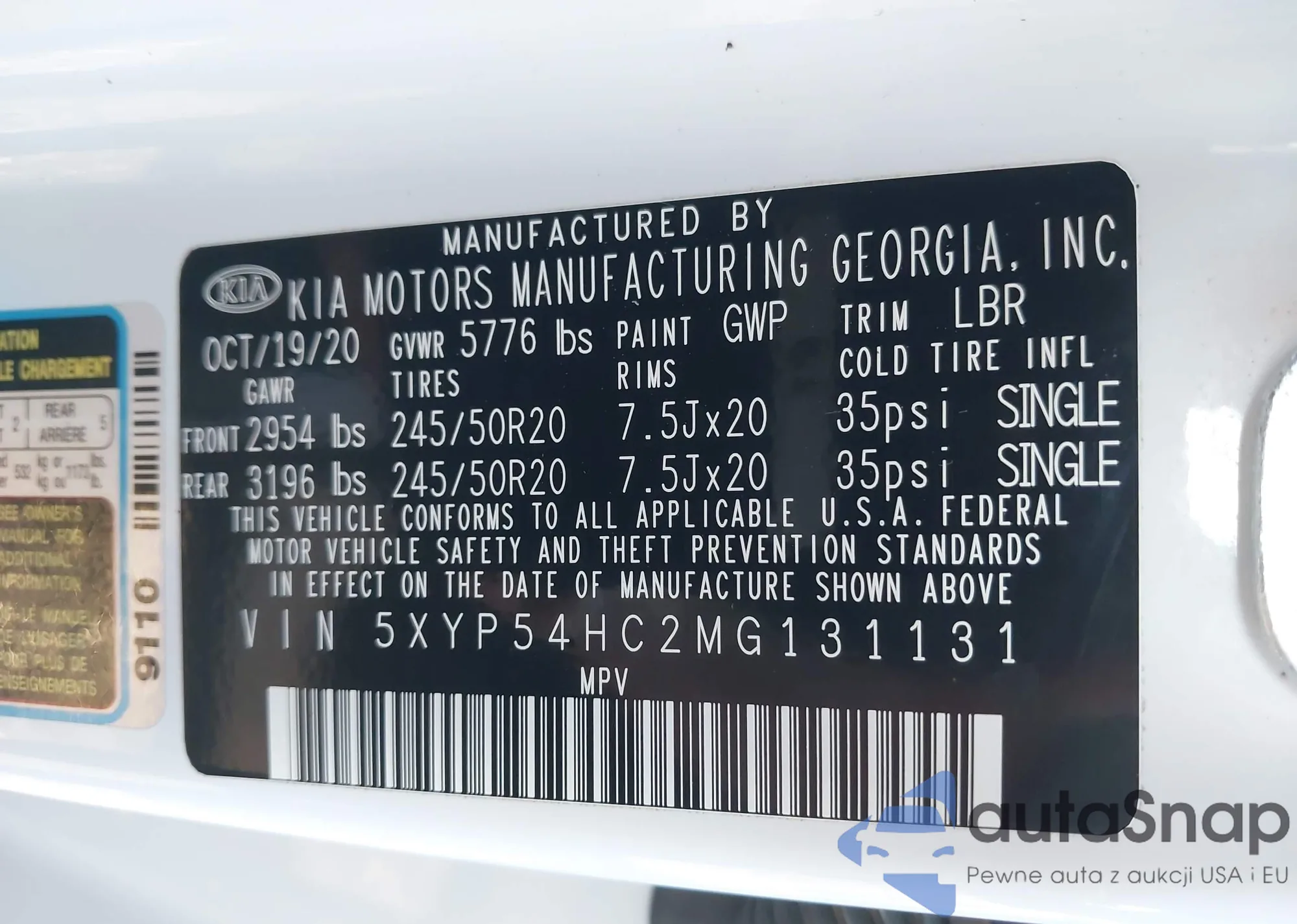 • VIN 5XYP54HC2MG131131