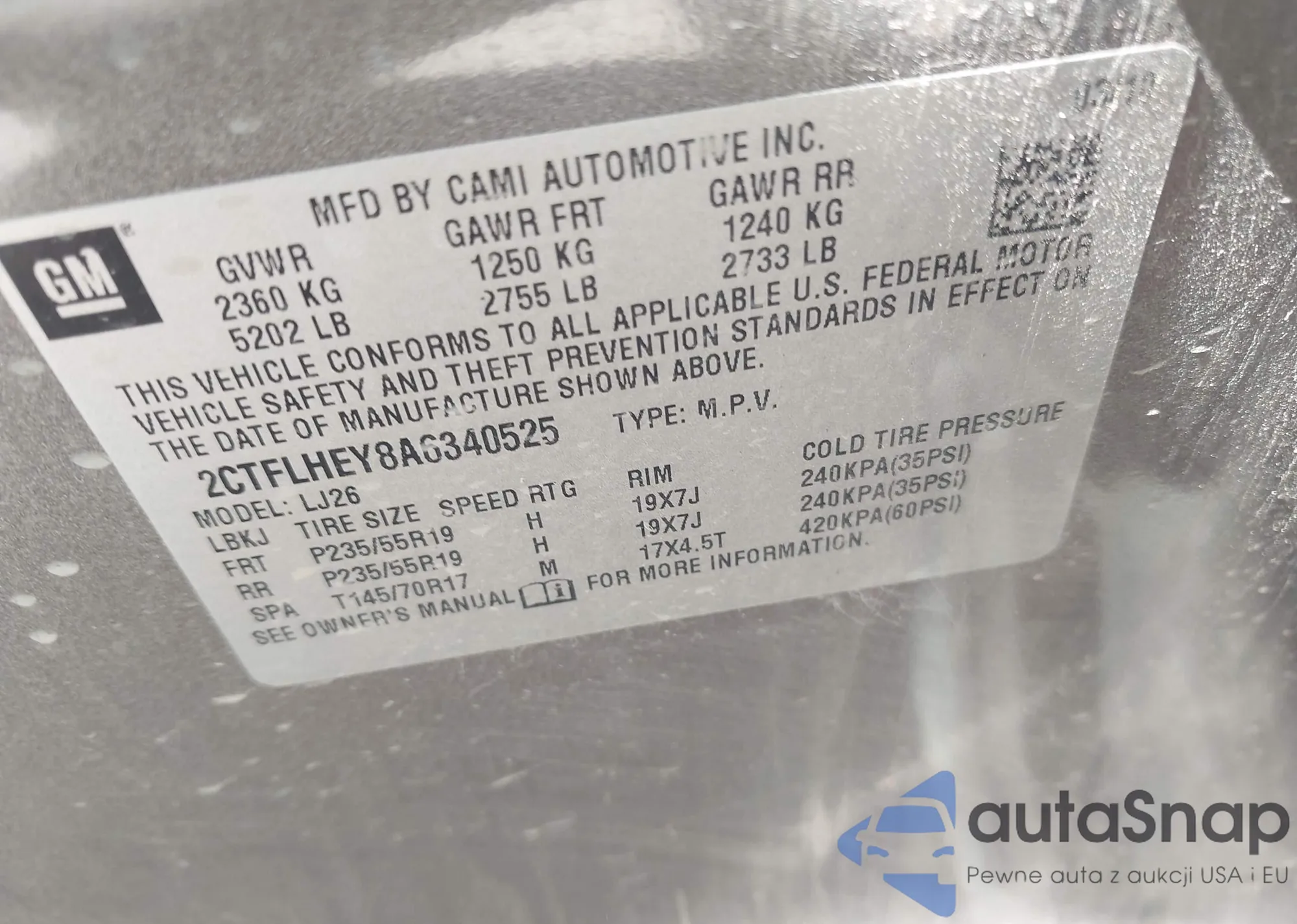 • VIN 2CTFLHEY8A6340525