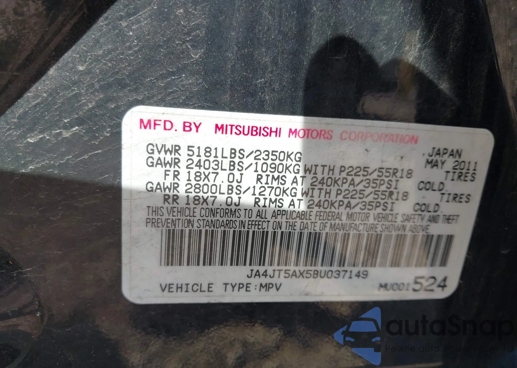 • VIN JA4JT5AX5BU037149