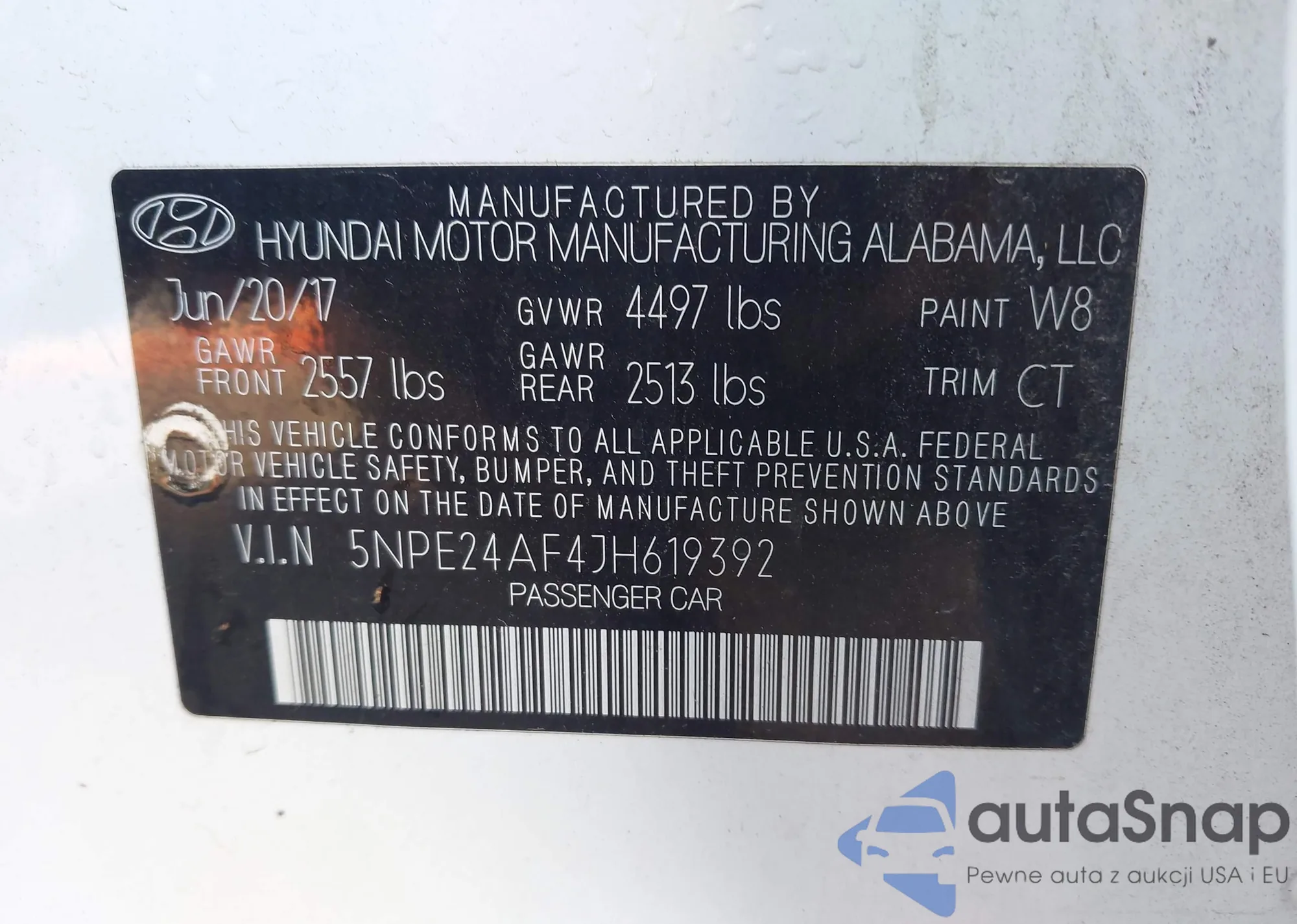 LOT: 43334457 VIN: 5NPE24AF4JH619392
