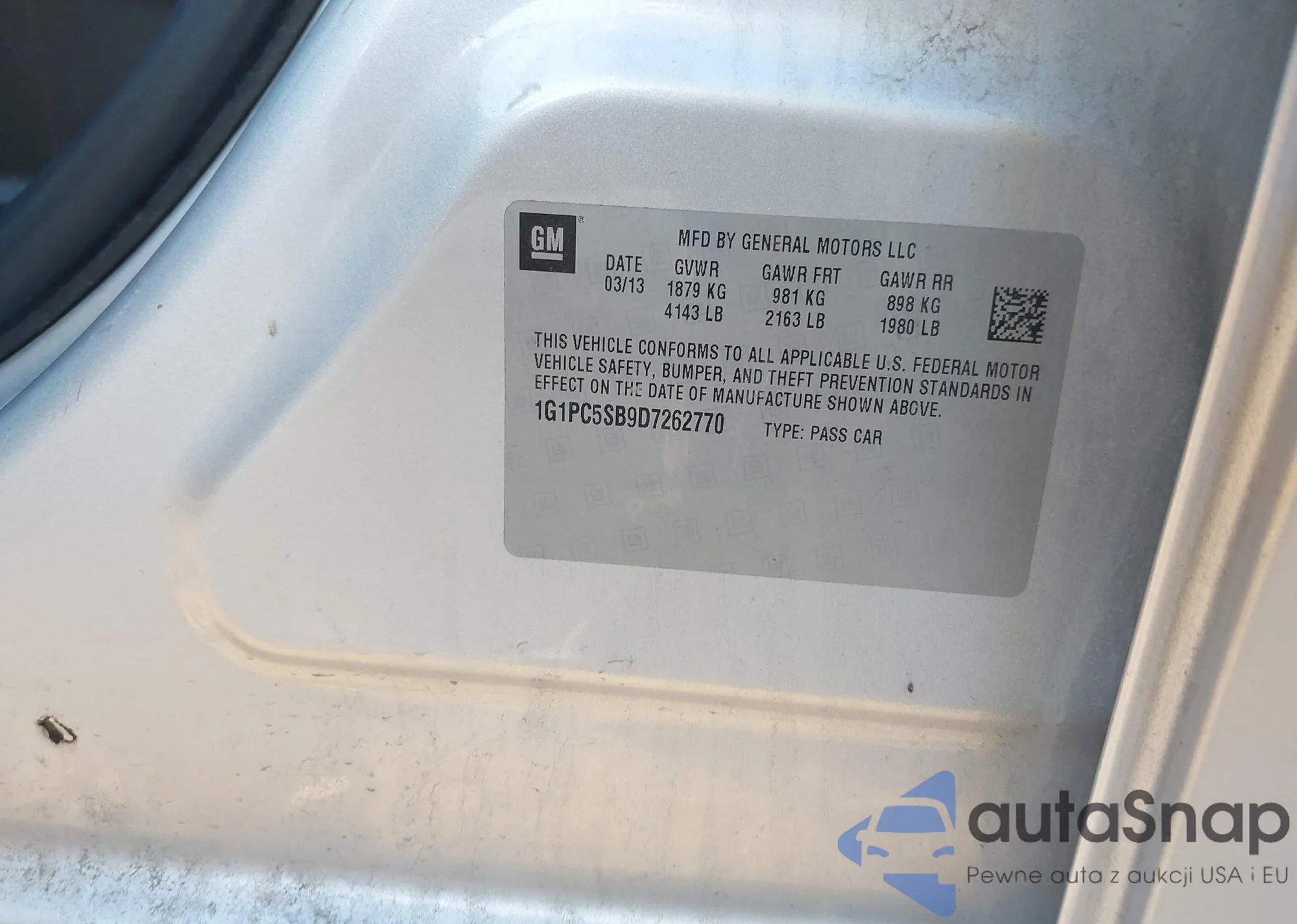 LOT: 43346210 VIN: 1G1PC5SB9D7262770
