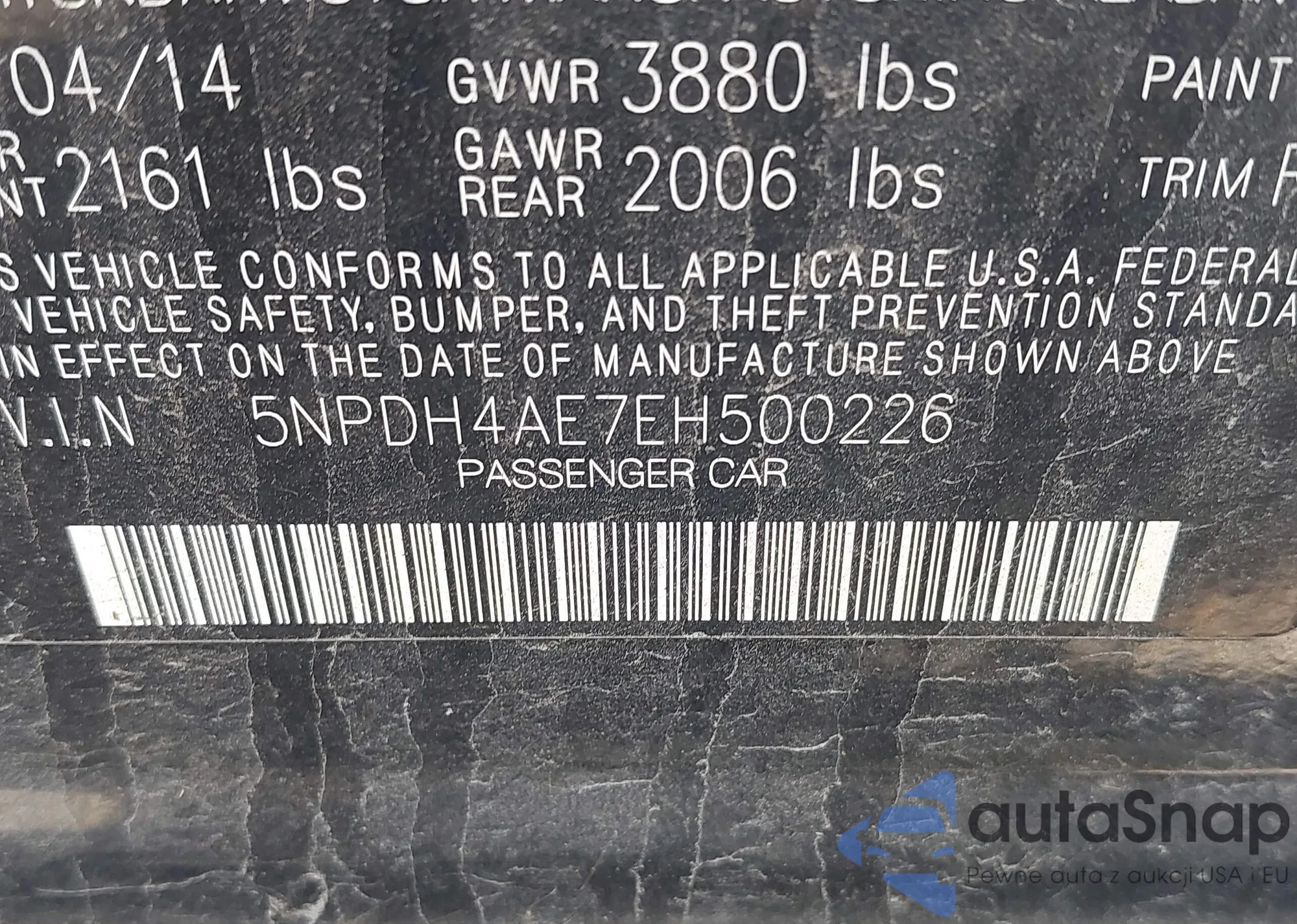 • VIN 5NPDH4AE7EH500226