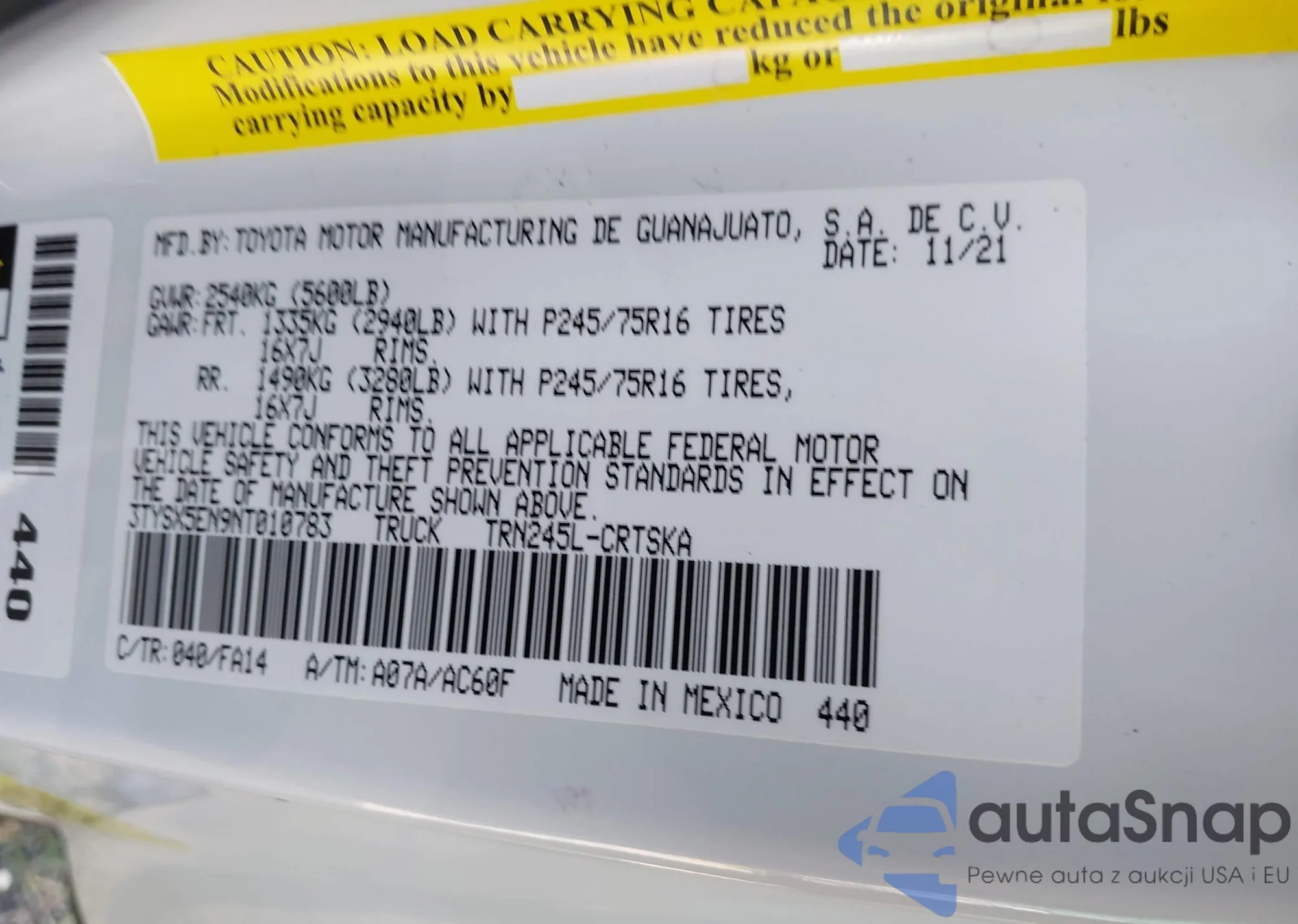 • VIN 3TYSX5EN9NT010783