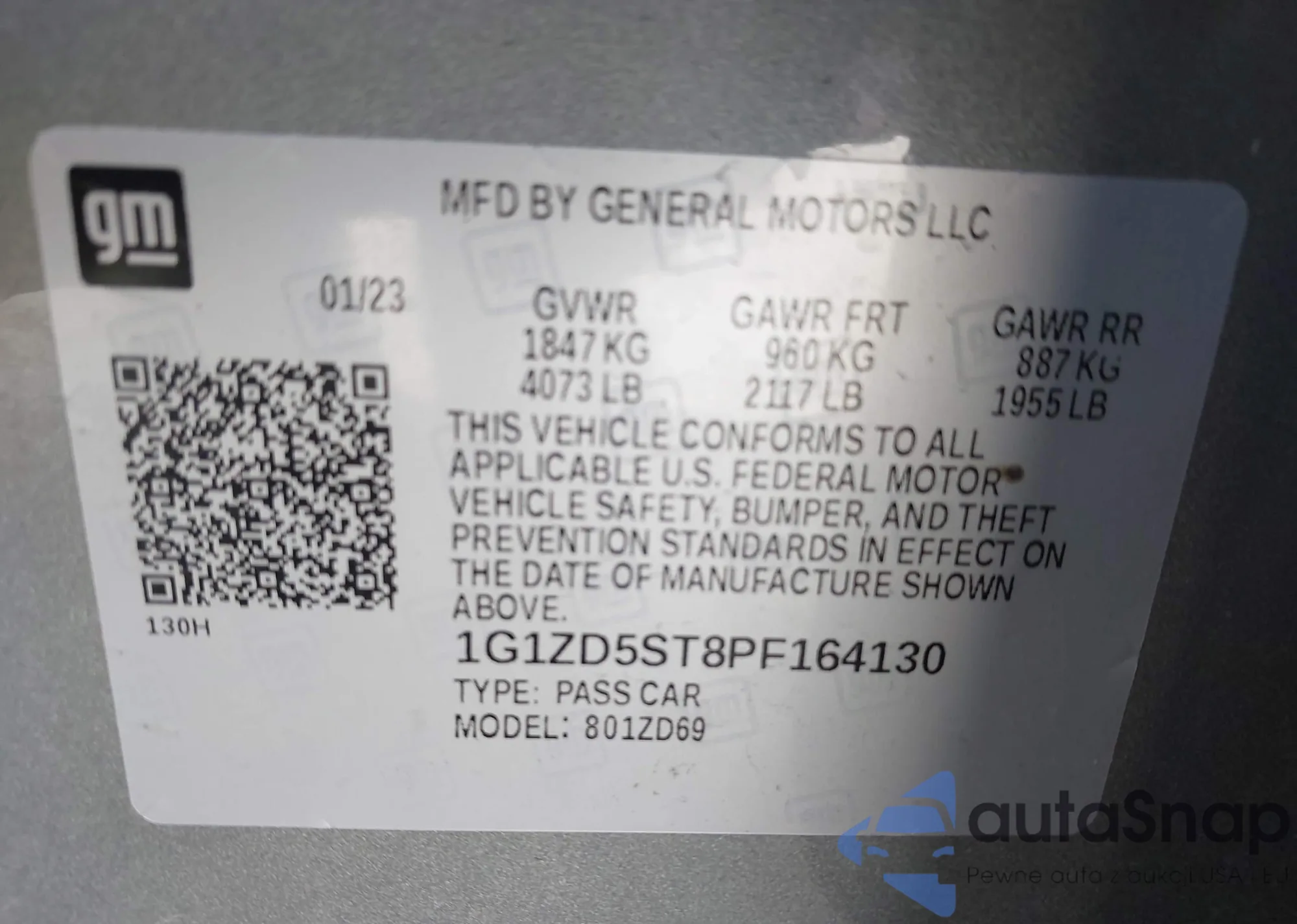 • VIN 1G1ZD5ST8PF164130