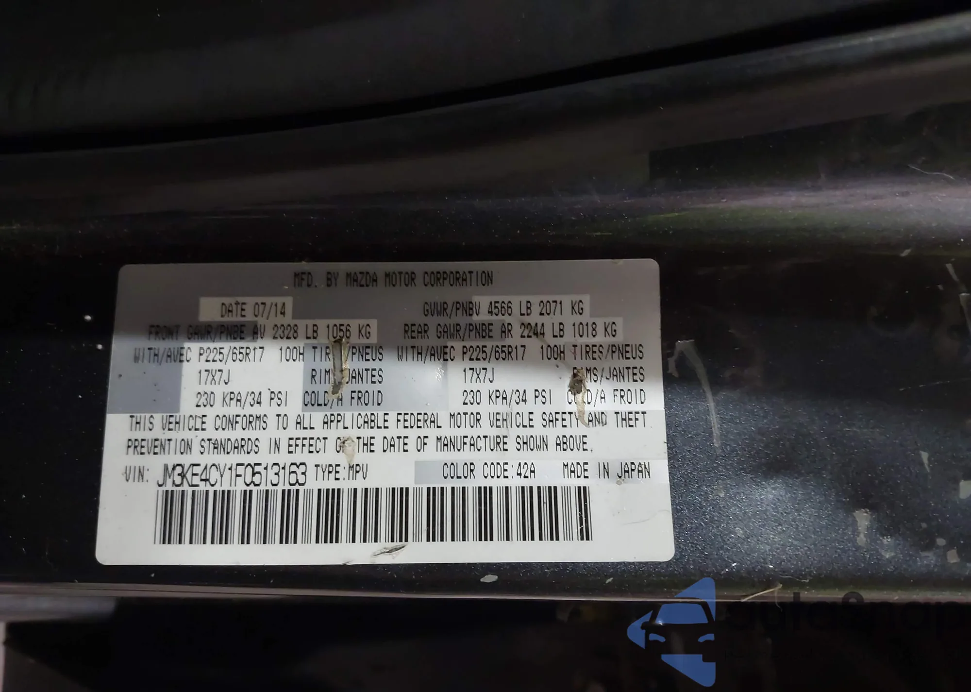 LOT: 43346560 VIN: JM3KE4CY1F0513163