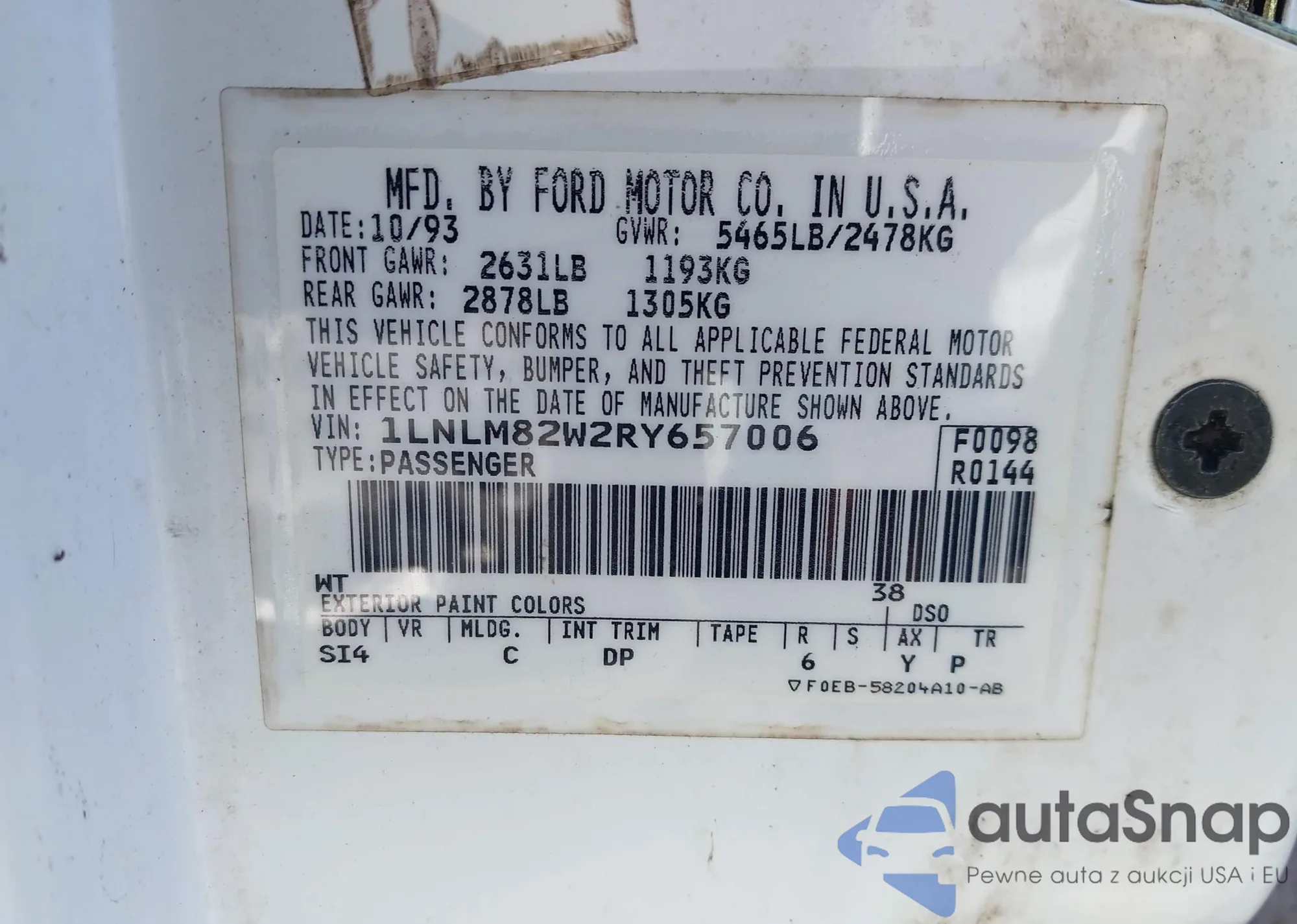 LOT: 43367237 VIN: 1LNLM82W2RY657006